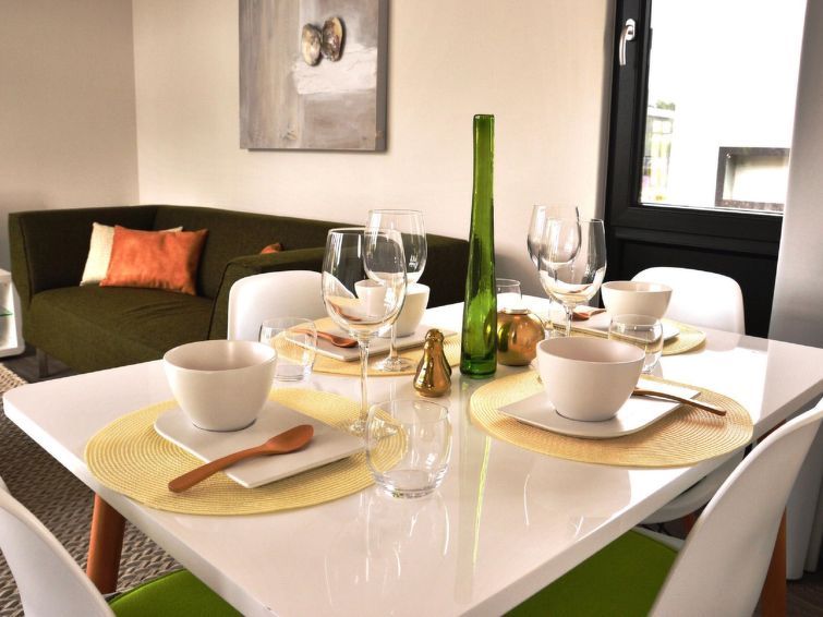 "Cube la Mer", 3-room bungalow 45 m2, on the ground floor. Comfortable furnishings: open living/dining room with dining table and flat screen. Exit to the terrace. 2 double bedrooms, each room with 2 beds. Open kitchen (dishwasher, Gas stove, 4 gas rings, kettle, electric coffee machine, combination microwave).