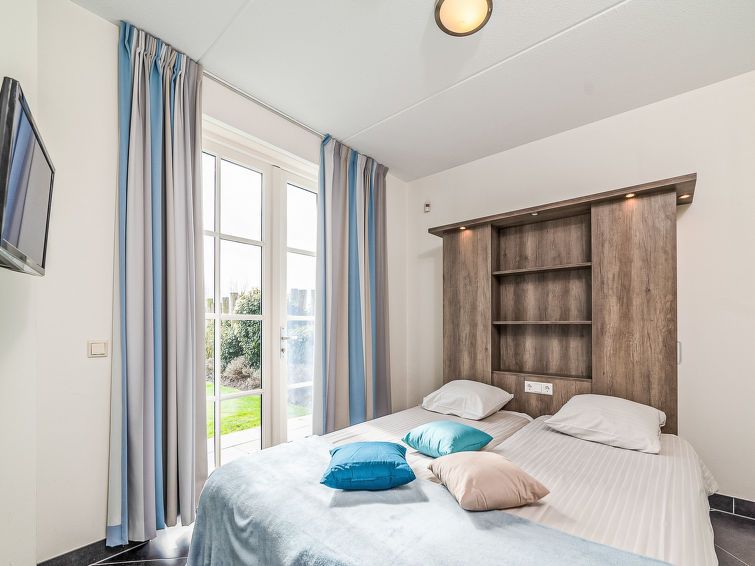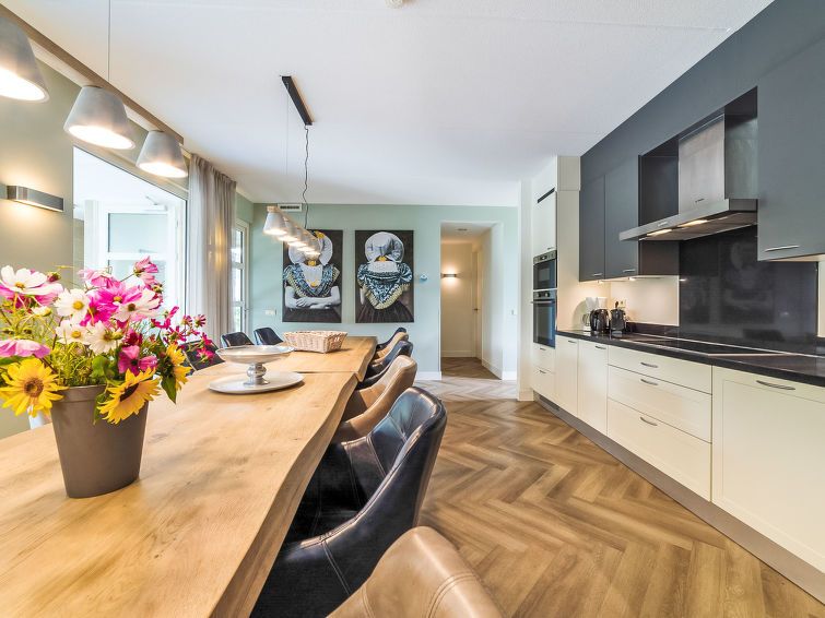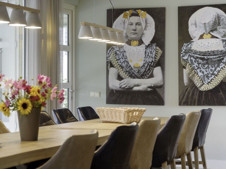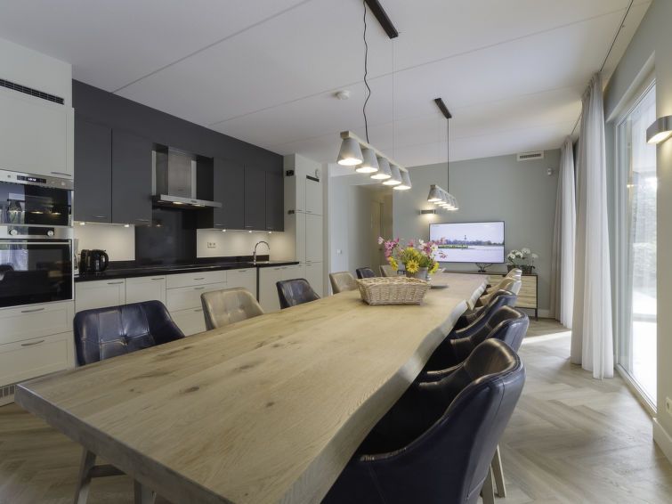 "12p. Groepswoning zwembad", 7-room villa 260 m2 on 2 levels. Comfortable furnishings: entrance hall with separate WC. 4 rooms, each room with 2 beds (90 cm, length 210 cm), shower/WC and flat screen. Luggage room. Large kitchen-/living room (oven, dishwasher, 6 induction hot plates, kettle, microwave, electric coffee machine, Capsules for coffee machine (Nespresso-not incl.