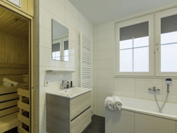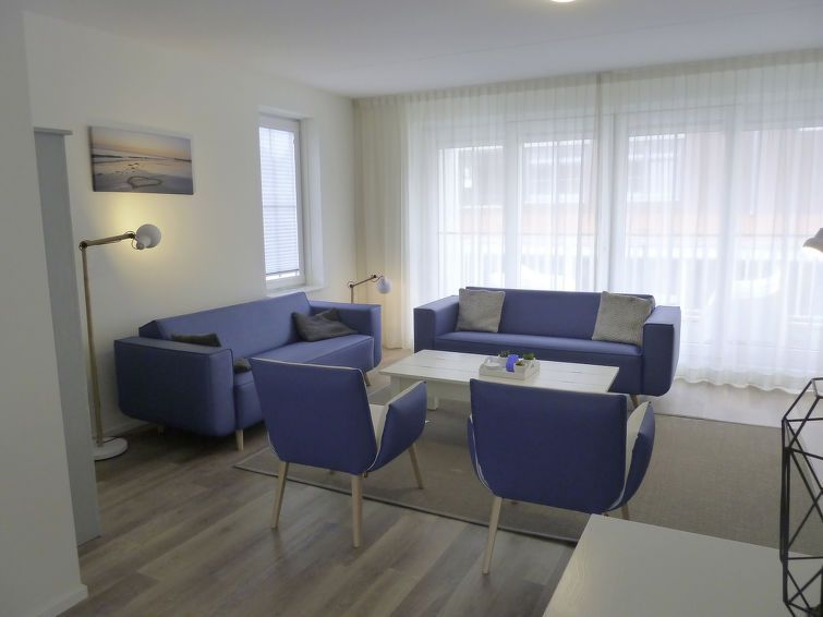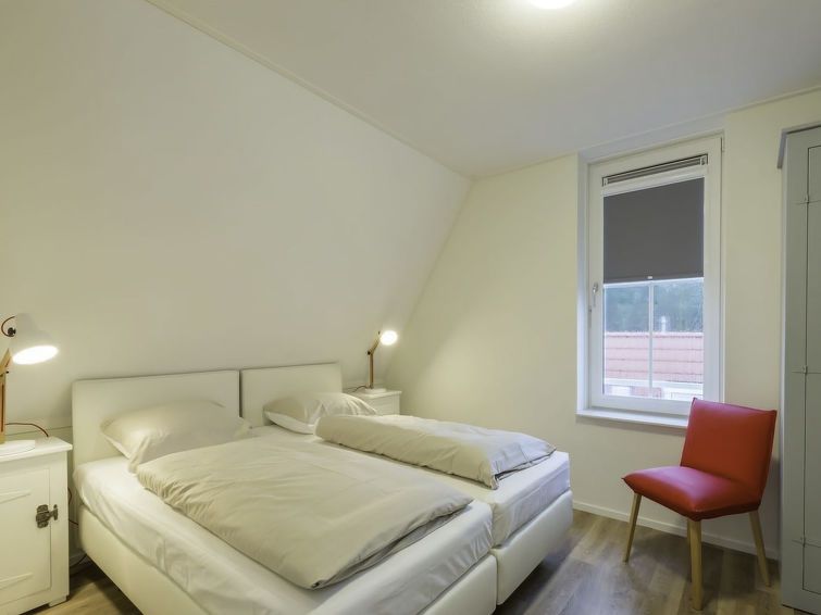 "Dishoek Dunes Residence & Sauna", 4-room apartment on the upper floor. Object suitable for 6 adults. Spacious and bright: upper floor: living/dining room with open-hearth fireplace and TV. 1 double bedroom with 2 beds (80 cm, length 200 cm), separate WC and shower. Exit to the balcony.