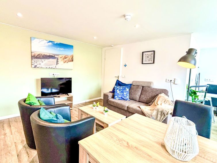 "Beach House Westkapelle 105.4", 4-room apartment on 1st floor. Comfortable furnishings: entrance hall. Exit to the terrace. Living/dining room with dining table and TV. 2 rooms, each room with 2 beds (80 cm, length 200 cm). 1 room with 1 bed. Kitchen (dishwasher, 4 induction hot plates, kettle, freezer, electric coffee machine, combination microwave).