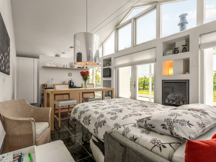 2 people with a dog. Storage space is available, but it's taken up by the owner's CD and record collection. Lots of dust and cobwebs. Furniture is okay, but very worn. The bed is a sofa bed, making it difficult to lie down. Pots and pans have wobbly handles, and there's no broom or vacuum. With a dog, after two days of beach partying, the surroundings are wonderful, and the people are extremely friendly. We didn't sleep well, but we saw and experienced a lot.