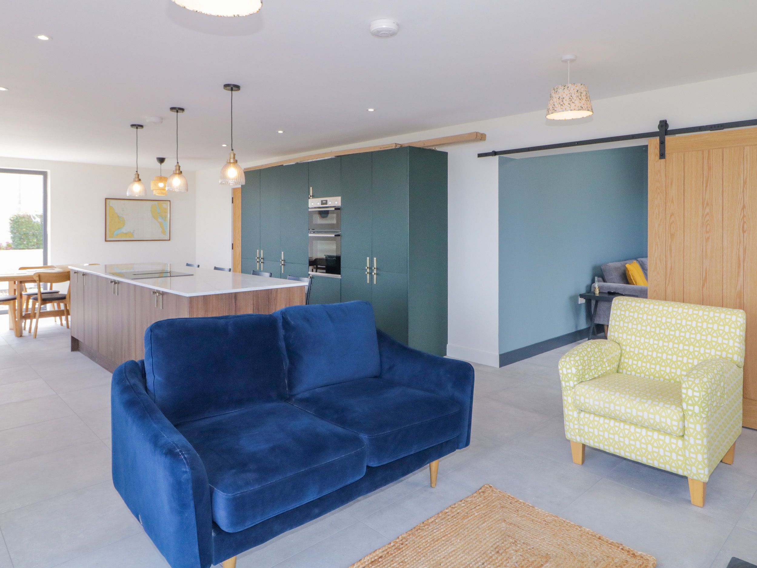 Accomodation Details Please note: This property can accommodate up to 5 adults and an additional 3 children or teens, due to the bed configuration. Four bedrooms: 1 x king-size with en-suite walk-in shower, basin, and WC, 1 x king, 1 x truckle (pull out bed), 1 x child's bunk bed. Bathroom with freestanding bath, shower over, basin, heated towel rail, WC. Games room with Smart TV. Cloakroom. Open-plan living space with kitchen, dining area and sitting area with woodburning stove and snug
