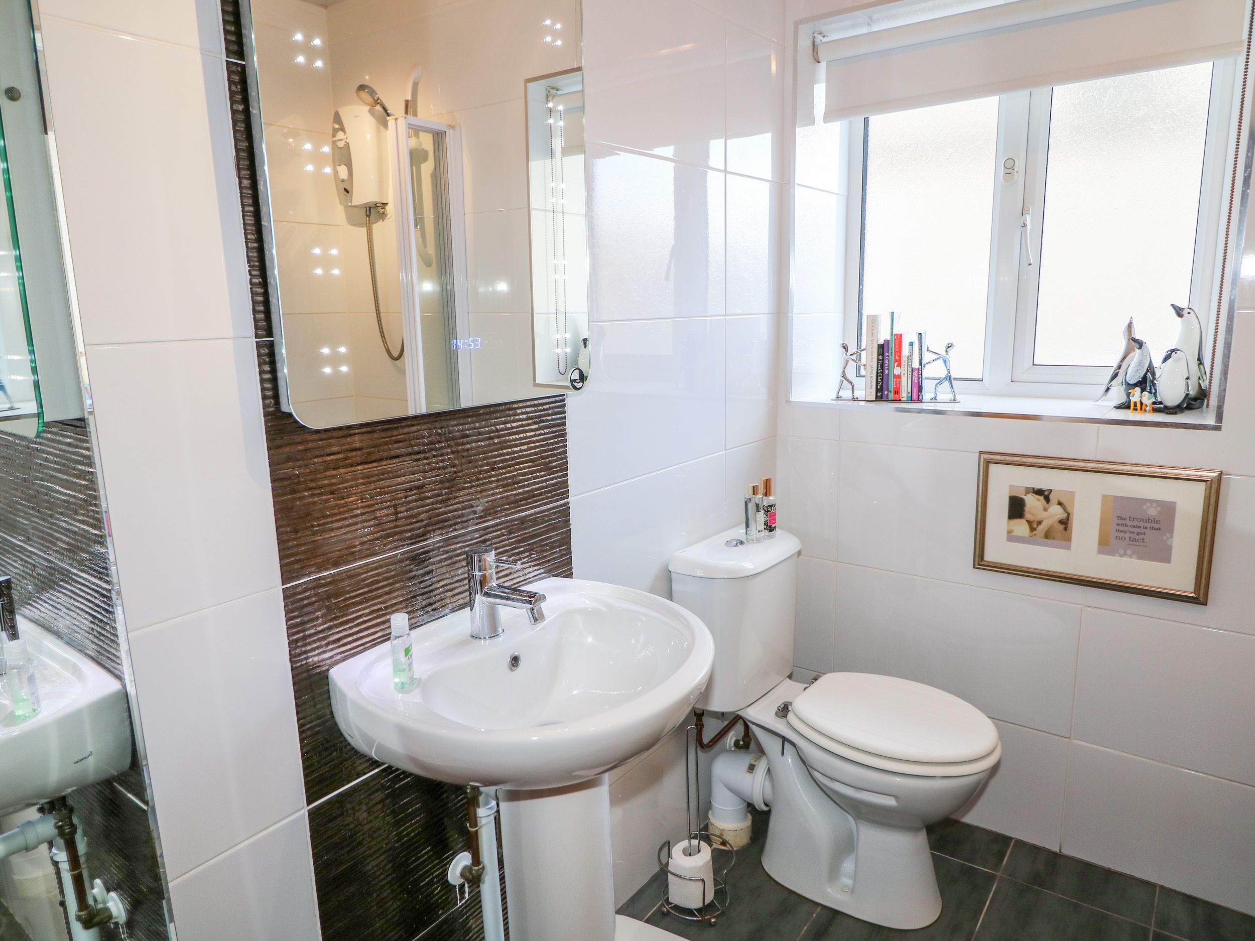 The apartment is ideally situated having access to great beach, train station and golf course. There is a great wee bakery across the road and a well stocked grocers nearby. The apartment was very clean and had excellent parking facilities. The downside was that it was full of owners extremely large ornaments and there was virtually no cupboard space for our things especially in kitchen and lacked wardrobes with adequate hanging. The living room had only a 3 seater sofa and no chairs for 4 people and no tv although there were 3 TVs located in other areas. There was no table or chairs to use when having a meal although there was space in living room for this but it was occupied with rather peculiar objects, we did enjoy our stay in Castlerock but wouldn’t stay here again.