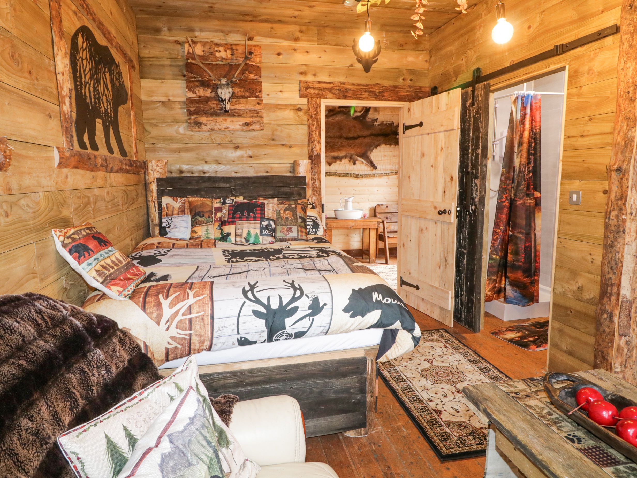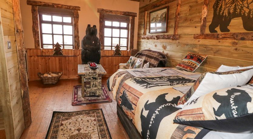 Holiday home Bear Claw Lodge is a single-storey retreat with a studio-style layout featuring a double bed, kitchenette, and sitting area. The property includes a shower room with a walk-in shower, basin, and WC. Amenities include Electric heating, a kettle, toaster, air fryer, Smart TV, and WiFi, with fuel, power, bed linen. included. A travel cot is available on request. Outside, guests can enjoy a shared garden with a lawned area, gravelled space, barbecue, and furniture. Parking is available in the on-site car park. One well-behaved pet is welcome. Conveniently, a pub is located on-site, and a shop is within 0.8 miles. Please note that Bear Claw Lodge is attached to The Blazon Saddle Saloon, with entertainment and catering facilities available on weekends, adding a unique charm to your stay. This property has a good housekeeping bond of GBP50
