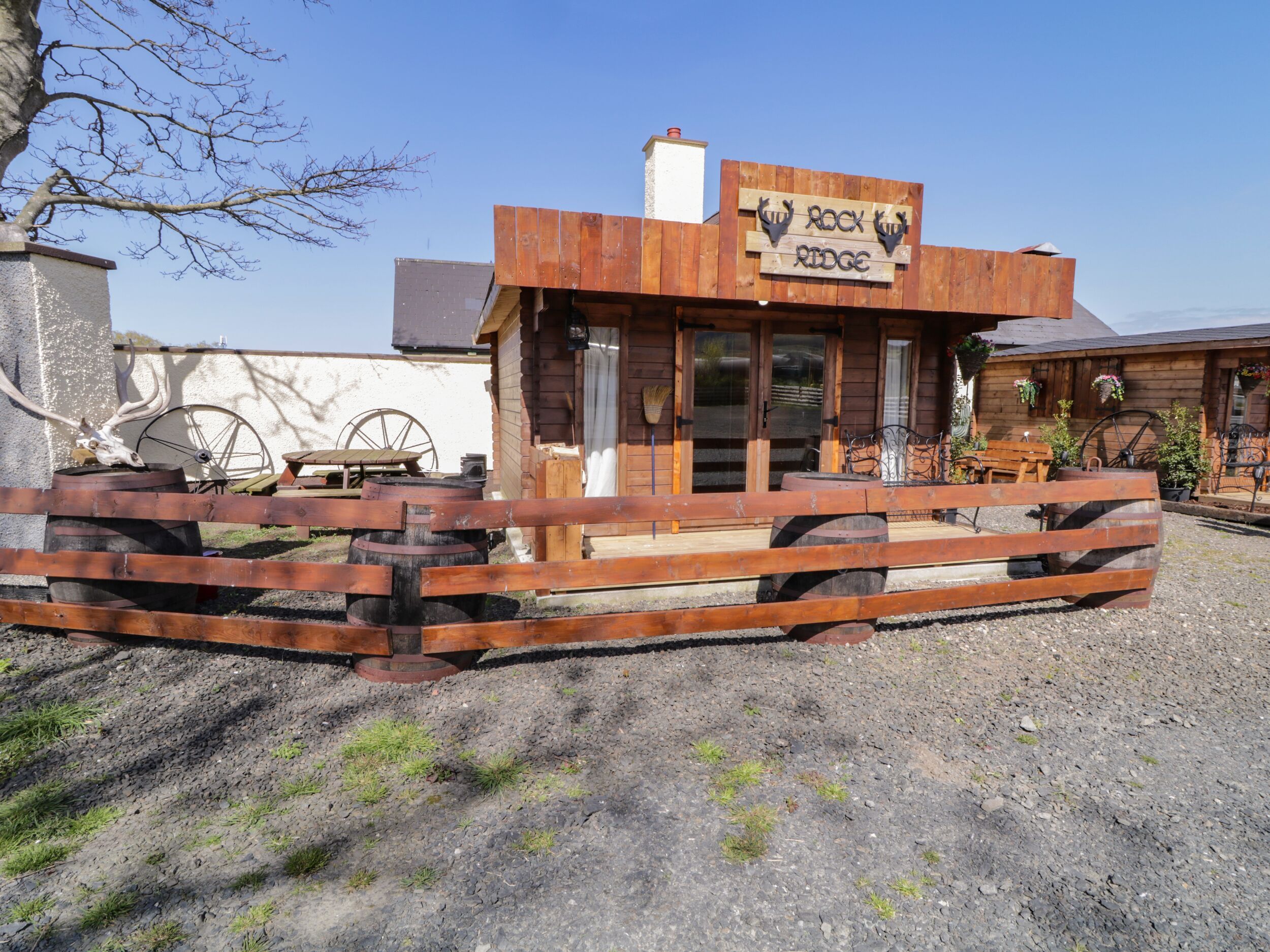 Holiday home Rocky Ridge Cabin consists of a kitchen with microwave, toaster, air fryer and kettle, a dining room with dining seating, and a sitting room with Smart TV. The bedroom is a double. There is a shower room with walk-in shower, basin, and WC. WiFi, fuel, power, bed linen, and towels are included in the rent. Outside, there is a front decking area with furniture. Side garden with picnic bench and fire pit, and public car park available. One well-behaved pet welcome. Sorry, no smoking at this property. Find your perfect escape at Rocky Ridge Cabin. Shop 0.8 miles, pub on-site. Note: Property is attached to The Blazon Saddle Saloon. Note: Entertainment and catering facilities available on-site at weekends. This property has a good housekeeping bond of GBP50