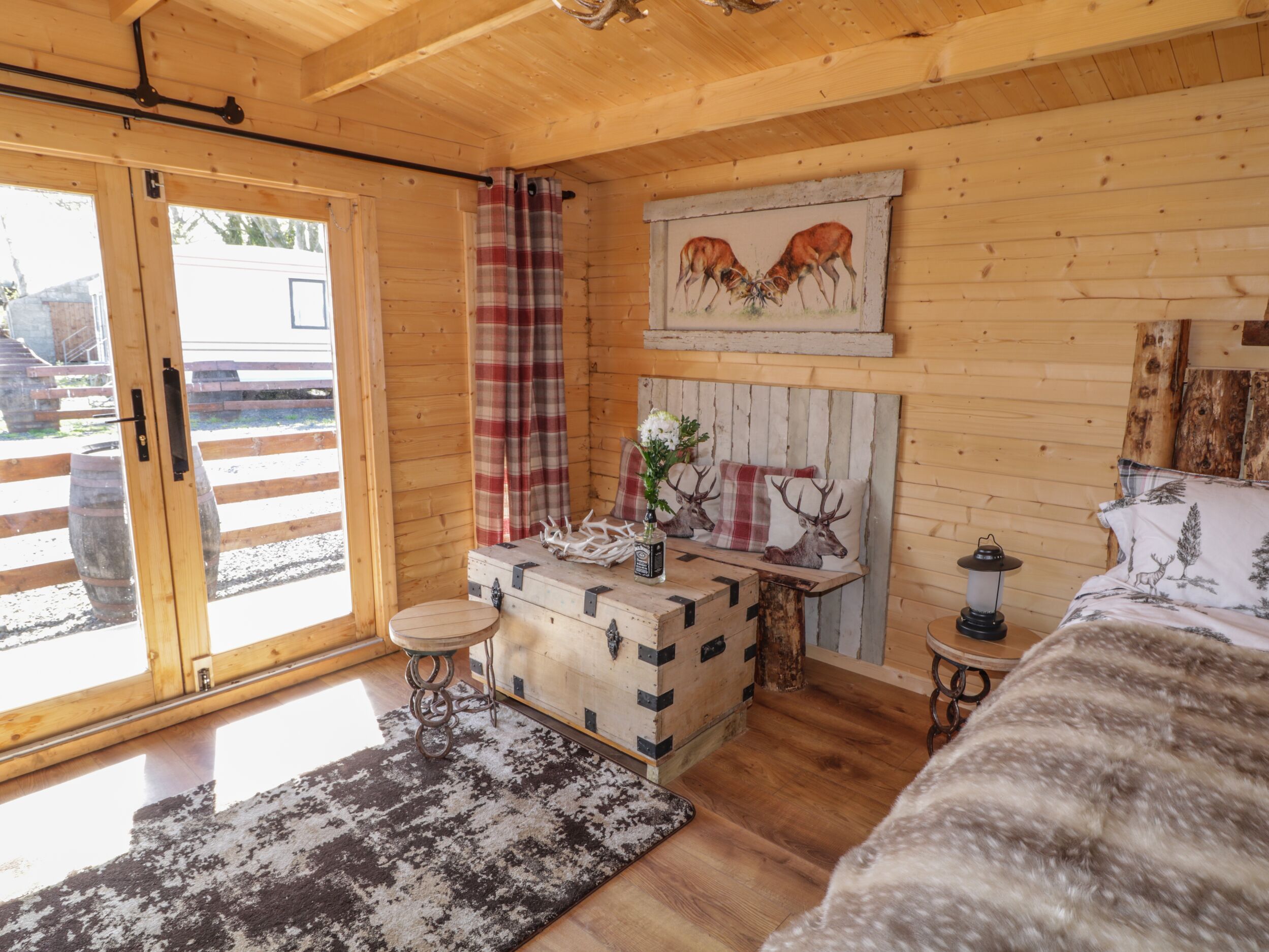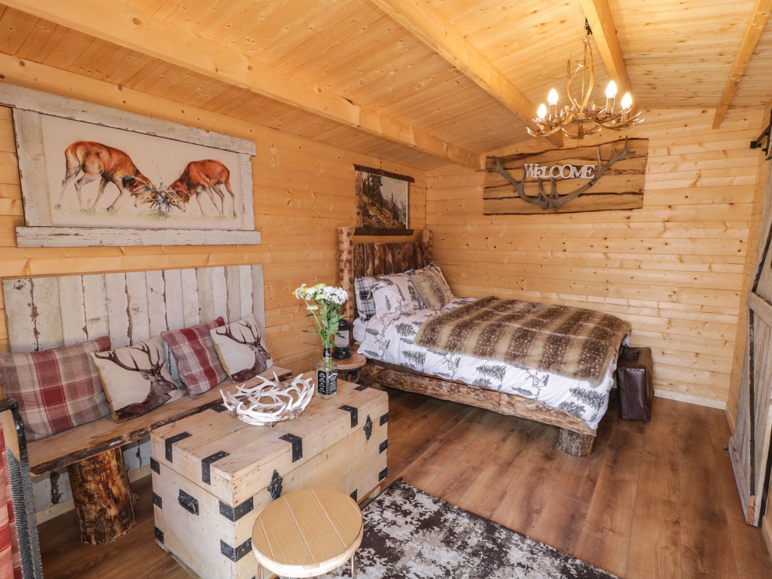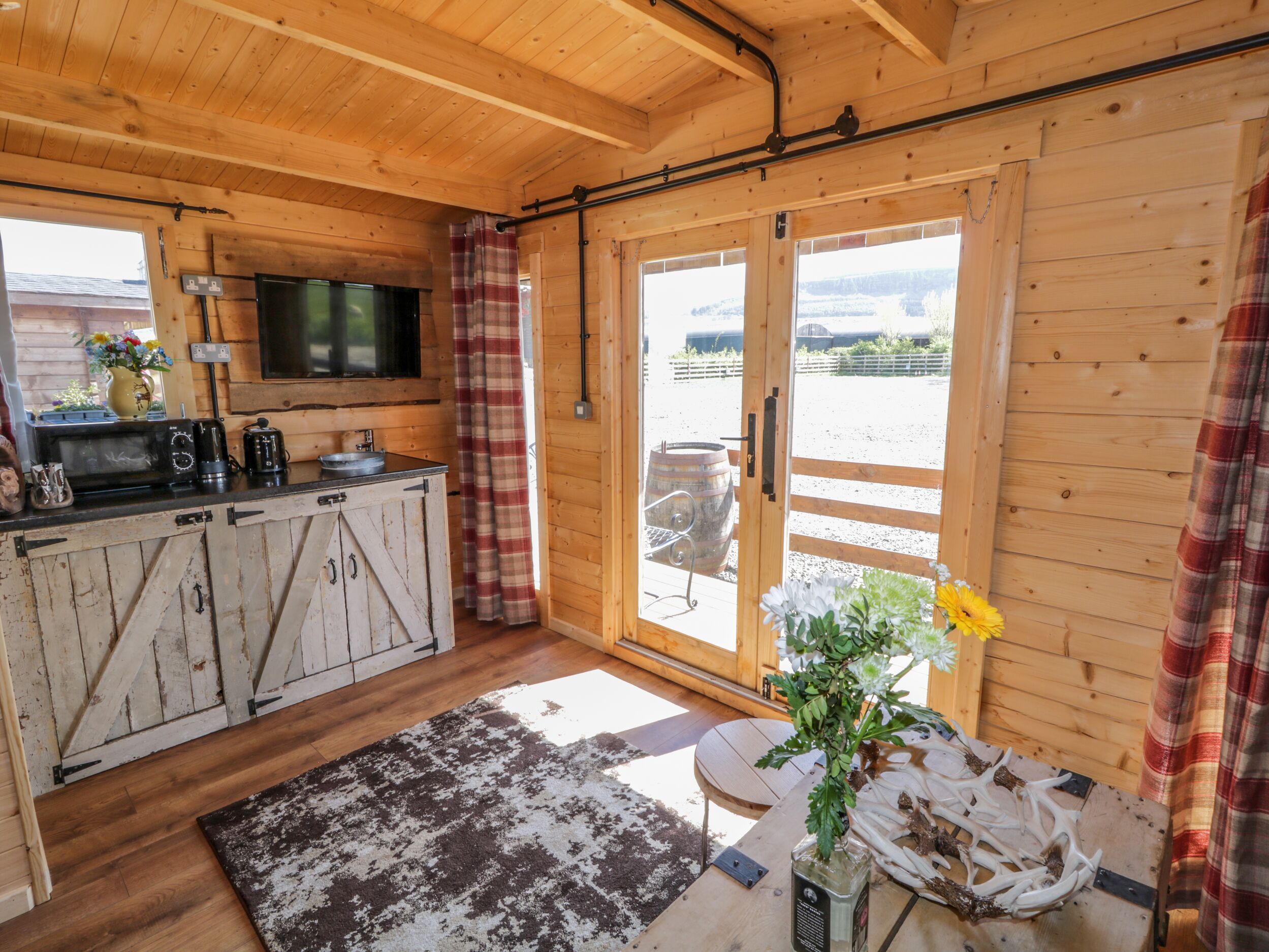 Amenities Electric central heating. Microwave, toaster, kettle, Air Fryer. TV, WiFi. Fuel and power inc. in rent. Bed linen inc. in rent. Please bring your own towels. Travel cot available. Public car park available. Front decking area with furniture. Side garden with picnic bench and firepit. One well-behaved pet welcome. Sorry, no smoking. Shop 0.8 miles, pub on-site. Note: Property is attached to The Blazon Saddle Saloon. Note: Entertainment and catering facilities available on-site at weekends.