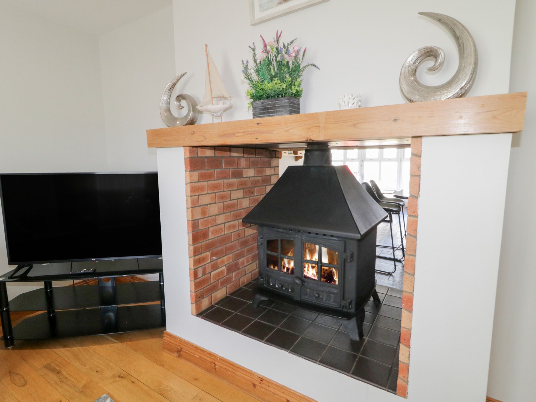 Oil fired underfloor heating with double-sided woodburning stove and gas fire. Gas hob, electric oven, fridge/freezer, dishwasher, washing machine, tumble dryer, TV with Freeview and WiFi. Fuel, power and starter pack for stove inc. in rent. Bed linen and towels inc. in rent. Highchair and travel cot available. Ample Off-road parking. Rear garden with lawn area and patio area with furniture and a barbecue. One well-behaved pet welcome. Sorry, no smoking allowed. Pub and shop within 0.6 miles. Beach 0.7 miles. Note: As of 03/09/2020 this property no longer accepts pets, bookings made before then will be honoured. Pets will no longer be accepted in this property from 28/05/2021. No stag / hen parties at this property please.