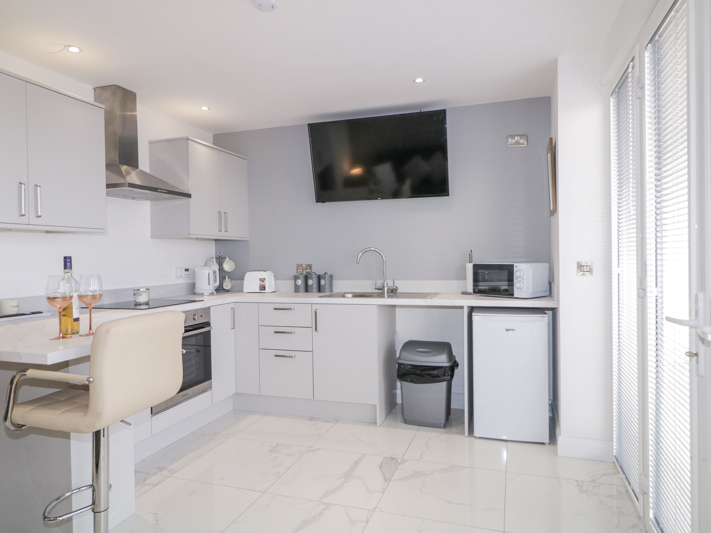 Accomodation Details Single-storey. One double bedroom with Smart TV, and en-suite, walk-in shower, basin, heated towel rail, and WC. Open-plan living space with kitchen, dining area and sitting area.