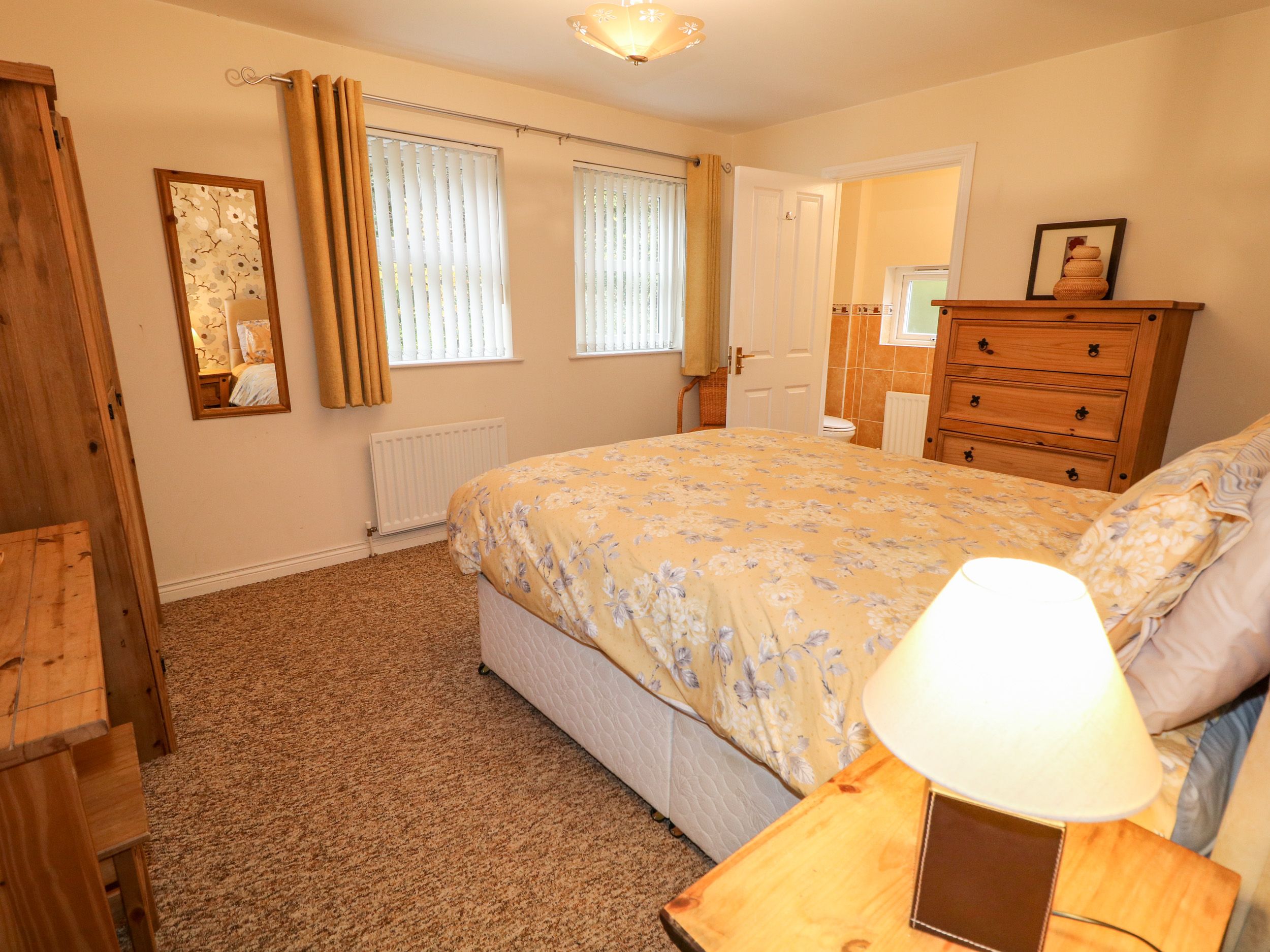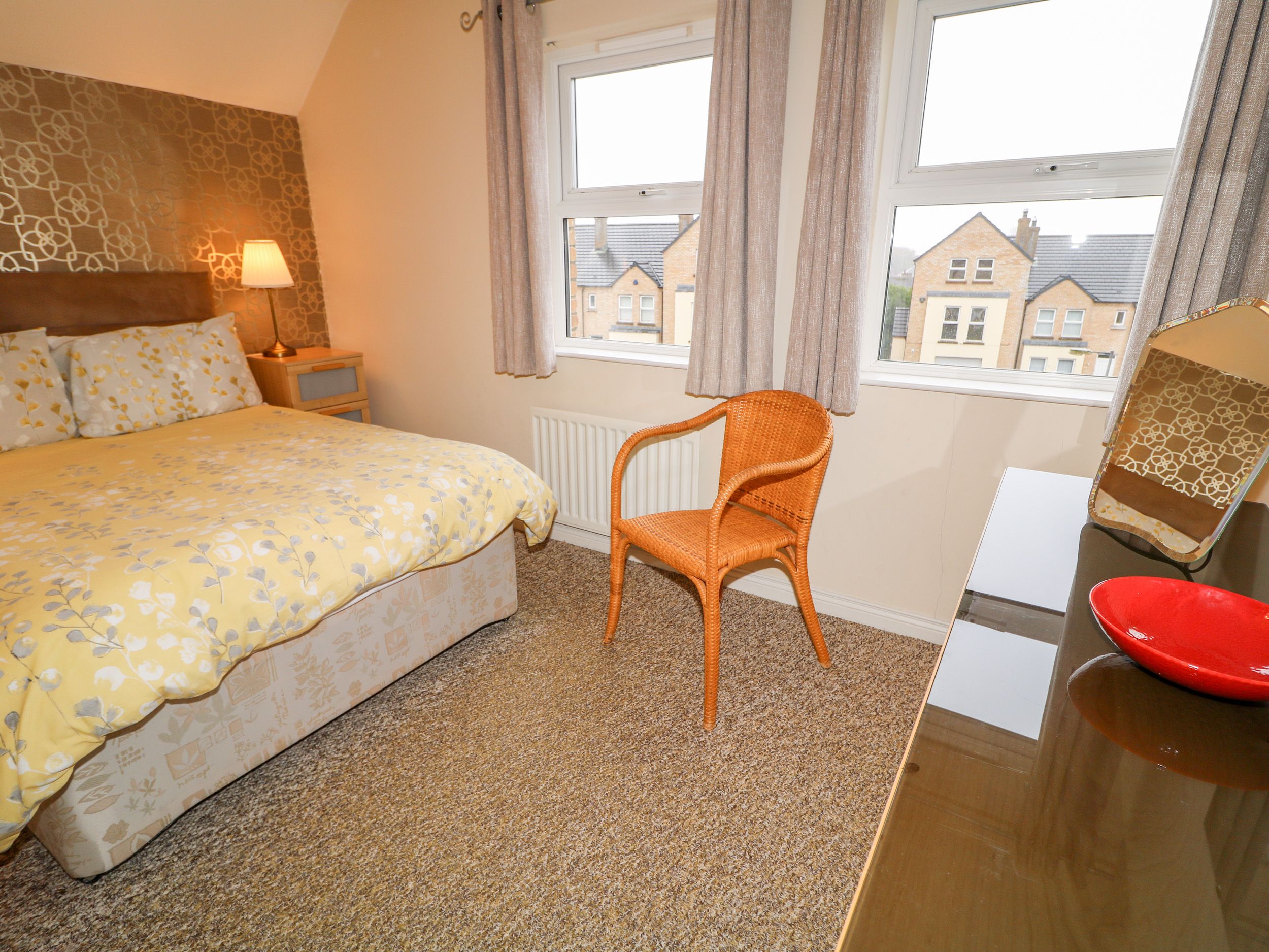 Holiday home The Admiral is a wonderful three-storey house resting in Coleraine in County Londonderry, Northern Ireland. There are four bedrooms in the property sleeping nine guests, including a second-floor triple bunk, a first floor king-size double with an en-suite shower room, a second-floor double with an en-suite shower room and a twin, served by a cloakroom and a second-floor bathroom. The holiday home also boasts an open-plan living space with a kitchen, dining area and sitting area, a utility and a first-floor sitting room with an open fire. Outside you can find a lawn and patio garden with furniture and off-road parking for two cars. The Admiral makes a delightful escape for friends or families seeking to explore Northern Ireland.