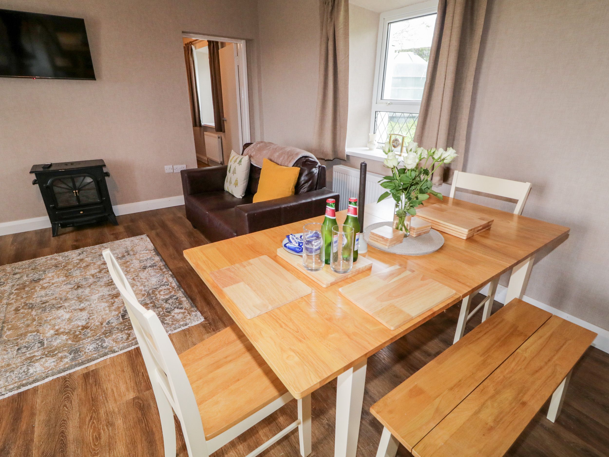 Accomodation Details Single-storey. Three bedrooms: 2 x double, 1 x twin. Bathroom with bath, shower over, basin and WC. Open-plan living space with kitchen, dining and sitting area