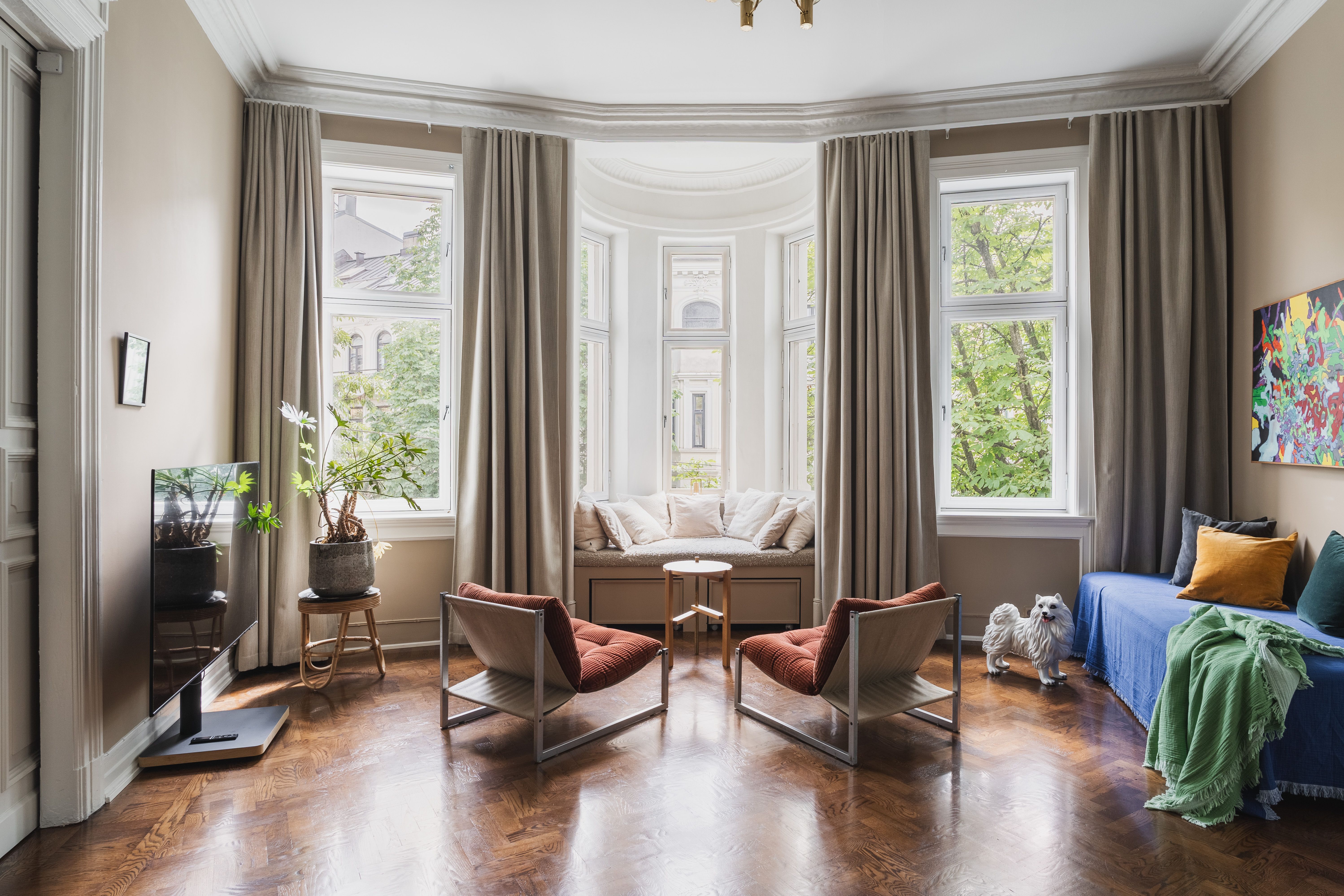 Settle into one of Oslo’s most sought-after neighbourhoods in this elegant yet charming apartment in Frogner. High ceilings, panelled walls and tasteful decor and art are scattered throughout, and the kitchen seems like it’s been pulled directly from a Scandinavian interior design magazine. Take advantage of the two balconies that look over the tree-lined street below, sitting with your coffee as the morning goes by. Then, venture out and find the fabulous eateries and landmarks nearby, or take an easy tram straight into the middle of Oslo.