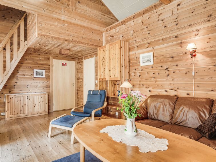 "Veganeset I", 3-room semi-detached house 60 m2 on 2 levels. Object suitable for 2 adults + 2 children. Cosy and wooden furniture furnishings: living room with satellite TV. 1 room with 1 double bed. Small kitchen (2 hot plates, toaster, kettle, microwave, freezer, electric coffee machine) with dining table.