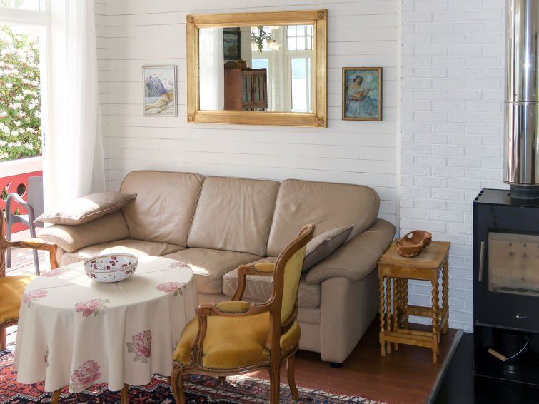 "Villa Lorna", 3-room apartment 55 m2. Bright, renovated in 2015, tasteful and cosy furnishings: living/dining room with Scandinavian wood stove, dining table, satellite TV, international TV channels and DVD. 1 room with 1 double bed. 1 room with 1 bed (90 cm, length 200 cm). Open kitchen (oven, 4 ceramic glass hob hotplates, toaster, kettle, electric coffee machine).