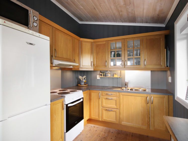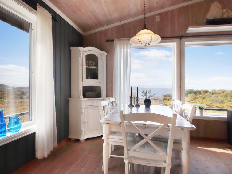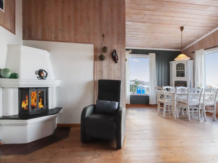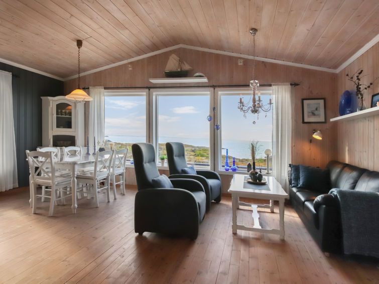 "Havbu", 5-room cottage 73 m2. Object suitable for 6 adults + 1 child. Comfortable and tasteful furnishings: open living/dining room with Scandinavian wood stove, dining table and TV. 1 room with 1 double bed (150 cm, length 200 cm). 1 room with 1 x 2 bunk beds (75 cm, length 200 cm) (120 cm, length 200 cm).