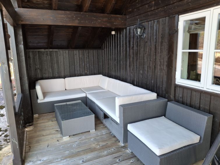 "Knodden", 10-room cottage 129 m2 on 2 levels. Comfortable and cosy furnishings: living room with Scandinavian wood stove. Exit to the terrace. 1 room with 1 double bed (180 cm, length 200 cm). Exit to the terrace. 1 room with 1 x 2 bunk beds (120 cm, length 200 cm) (90 cm, length 200 cm).