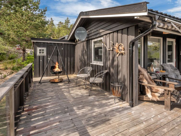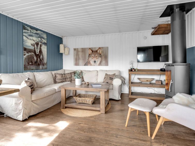 "Knøttebu", 3-room house 40 m2. Object suitable for 4 adults. Renovated in 2015, cosy furnishings: living/dining room with Scandinavian wood stove, dining table and satellite TV. Exit to the terrace. 1 room with 1 double bed (150 cm, length 200 cm). 1 children's room with 1 x 2 bunk beds (120 cm, length 200 cm) (75 cm, length 200 cm).