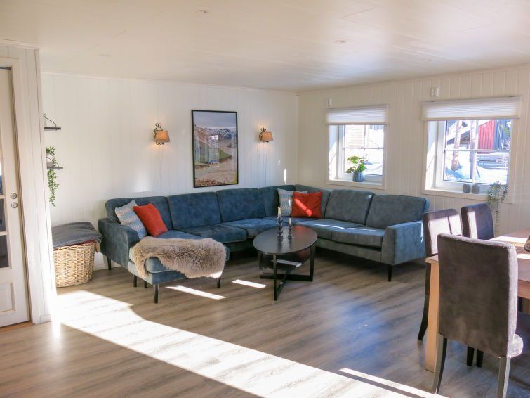 "Revenbu", 6-room house 120 m2 on 2 levels. Very comfortable and tasteful furnishings: open living/dining room with Scandinavian wood stove and TV. Exit to the terrace. 1 room with 1 double bed (180 cm, length 200 cm), shower/WC. Open kitchen (oven, 4 induction hot plates, toaster, kettle, microwave, electric coffee machine).