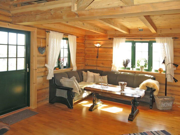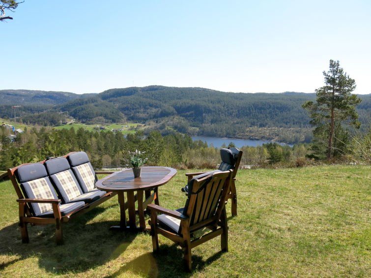 "Steinbu", 6-room house 125 m2 on 2 levels. Living/dining room with Scandinavian wood stove, dining table, satellite TV, hi-fi system and DVD. Exit to the terrace. 1 room with 1 double bed (160 cm, length 200 cm). Open kitchen (oven, dishwasher, 4 ceramic glass hob hotplates, toaster, kettle, freezer, electric coffee machine) with electric heating.
