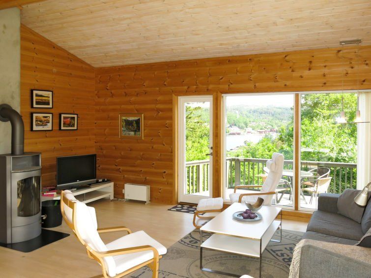 "Smibakken", 4-room house 80 m2. Object suitable for 5 adults. Bright, comfortable and tasteful furnishings: large living/dining room with sliding door, panoramic window with Scandinavian wood stove, dining table, satellite TV and DVD. Exit to the terrace. 1 room with 1 double bed (150 cm, length 200 cm).