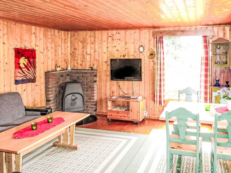 "Neset", 3-room house 55 m2. Rustic and wooden furniture furnishings: living/dining room with Scandinavian wood stove, dining table and satellite TV. Exit to the terrace. 1 double bedroom with 1 double bed (120 cm). 1 room with 1 x 1 bunk beds (70 cm, length 200 cm), 1 double bed (150 cm, length 200 cm).