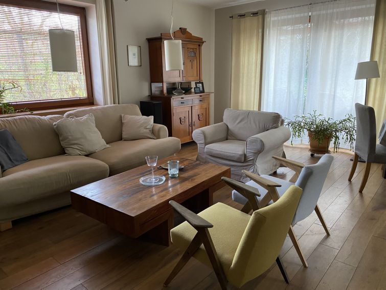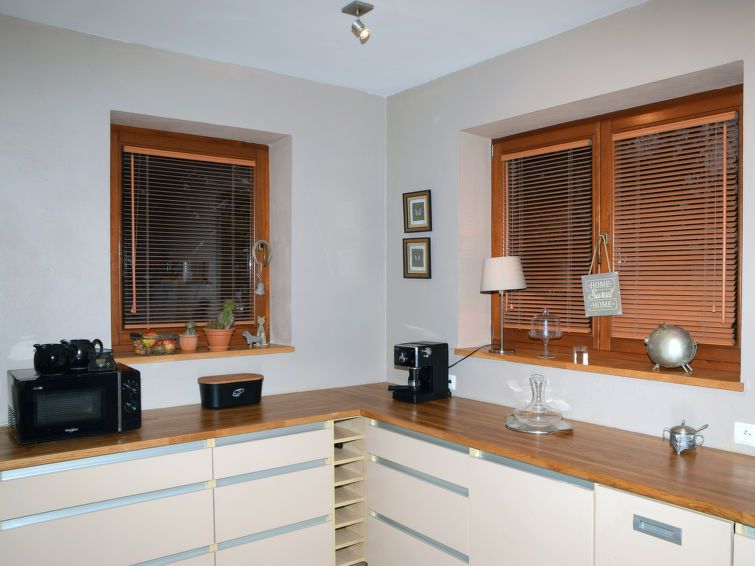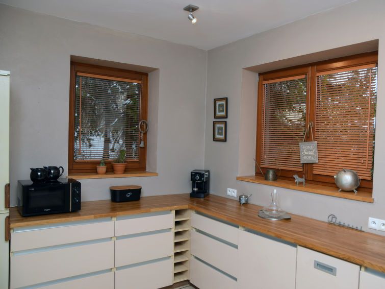 "Wieliczka", 5-room house 140 m2 on 2 levels. Living/sleeping room with 1 sofabed and satellite TV. Exit to the terrace. Kitchen (oven, dishwasher, 4 ceramic glass hob hotplates, microwave) with dining table. Shower/WC. Heating, gas heating, wood heating. Upper floor: 1 room with 1 bed.