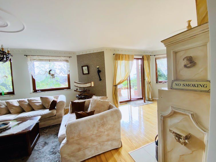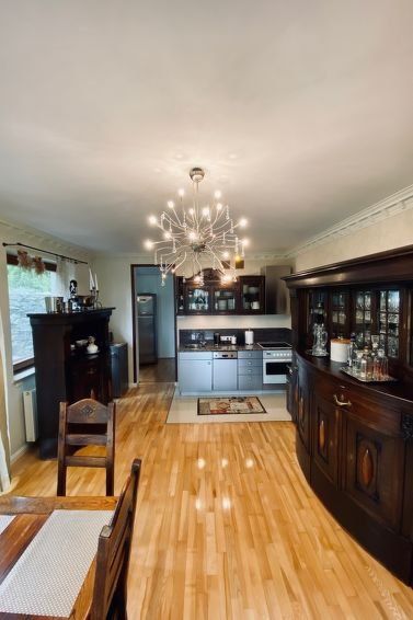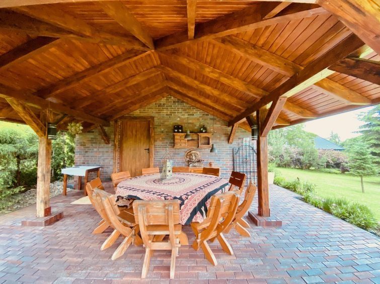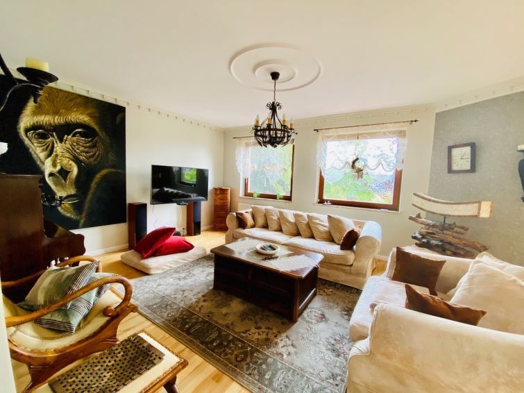 5-room house 250 m2 on 3 levels. Partly with sloping ceilings, very comfortable and modern furnishings: open large living room with 1 double sofabed, open-hearth fireplace, TV, video, radio, DVD and DVD collection available. Exit to the garden, to the terrace. Open dining room. 1 room with 1 double bed, bath/WC and with corner bath.