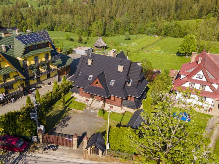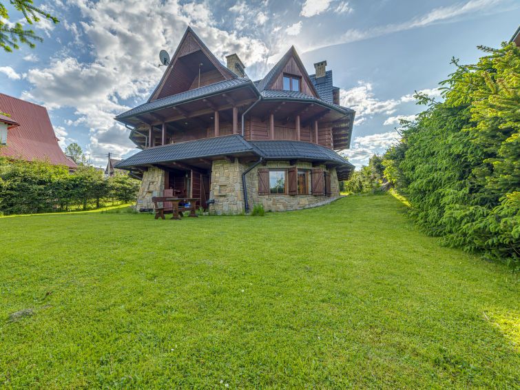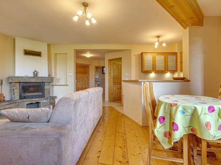 "Pod Jesionem", 2-room apartment 52 m2, on the ground floor. Open living room with 1 sofabed (90 cm), 1 double sofabed (140 cm), open-hearth fireplace, TV, radio and DVD. Exit to the garden, to the terrace. 1 room with 1 french bed (140 cm). Kitchenette (oven, 4 ceramic glass hob hotplates).