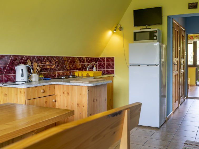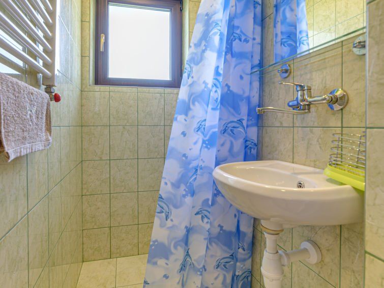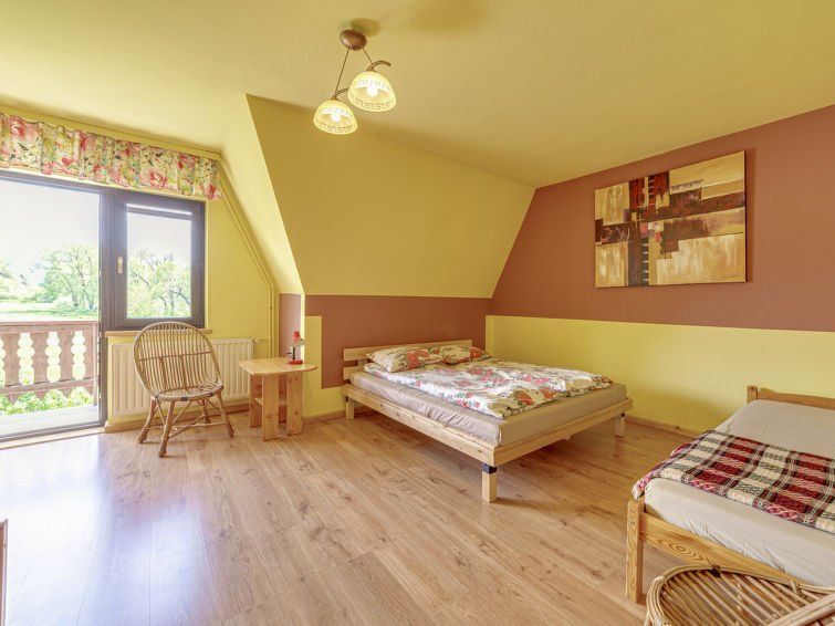 3-room apartment 100 m2 on 1st floor. Walk-through room with 1 french bed (130 cm). Exit to the balcony. 1 room with 3 beds (90 cm). Exit to the balcony. 1 room with 2 beds and 1 french bed (200 cm). Exit to the balcony. Kitchen (2 hot plates) with dining table, TV. Shower, sep. WC.