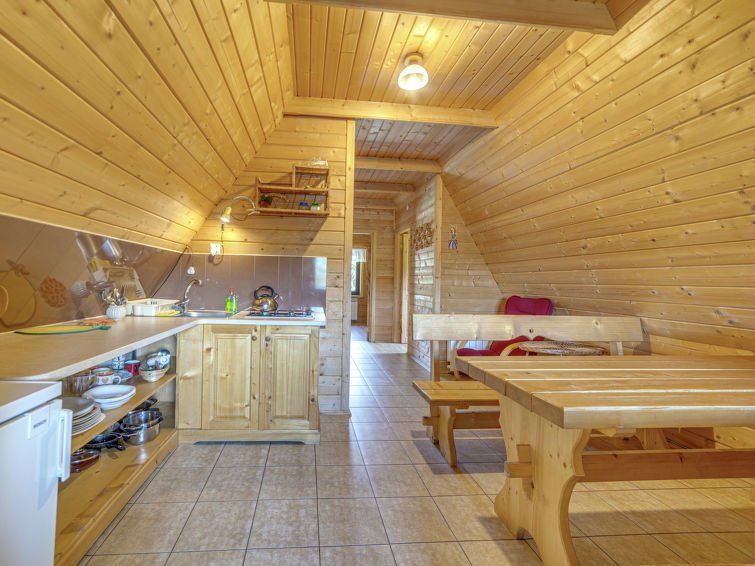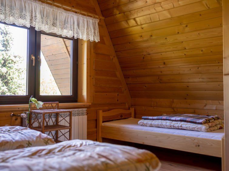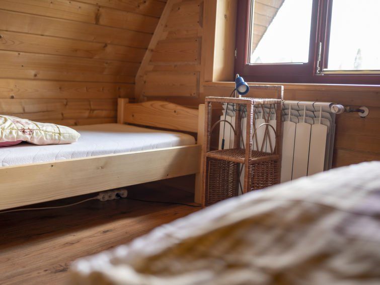 2-room apartment 40 m2, on the top floor. 1 room 13 m2, with sloping ceilings with 1 bed (90 cm, length 200 cm), 1 french bed (140 cm, length 200 cm). 1 room 9 m2, with sloping ceilings with 2 beds (90 cm, length 200 cm). Open kitchen (2 hot plates) with TV. Shower/WC. Heating. Facilities: Internet (WiFi, free).