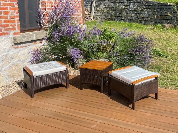 4-room farmhouse 200 m2 on 2 levels. Rustic and cosy furnishings: open living/dining room with 1 sofabed, satellite TV and tiled stove. Exit to the garden, to the terrace. Kitchenette (dishwasher, 2 ceramic glass hob hotplates, freezer, grill) with dining table and dining nook. Hip bath/WC.