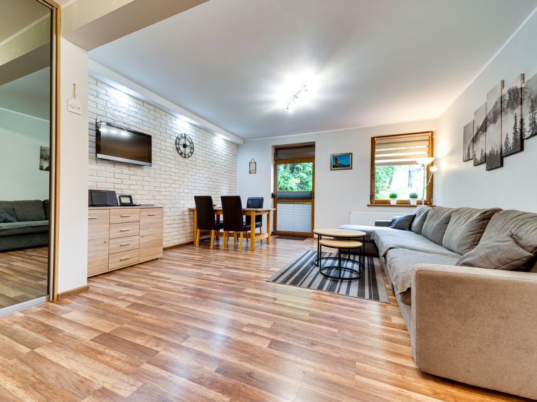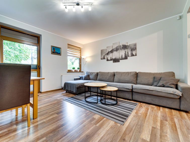 "Karpacz Boczna", 3-room apartment 75 m2, on the ground floor. Comfortable and cosy furnishings: living/sleeping room with 1 sofabed, satellite TV, radio and hi-fi system. Exit to the garden, to the terrace. 1 room with 2 beds. 1 room with 1 double bed. Open kitchen (oven, dishwasher, 4 gas rings, microwave, freezer) with dining table.