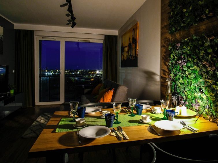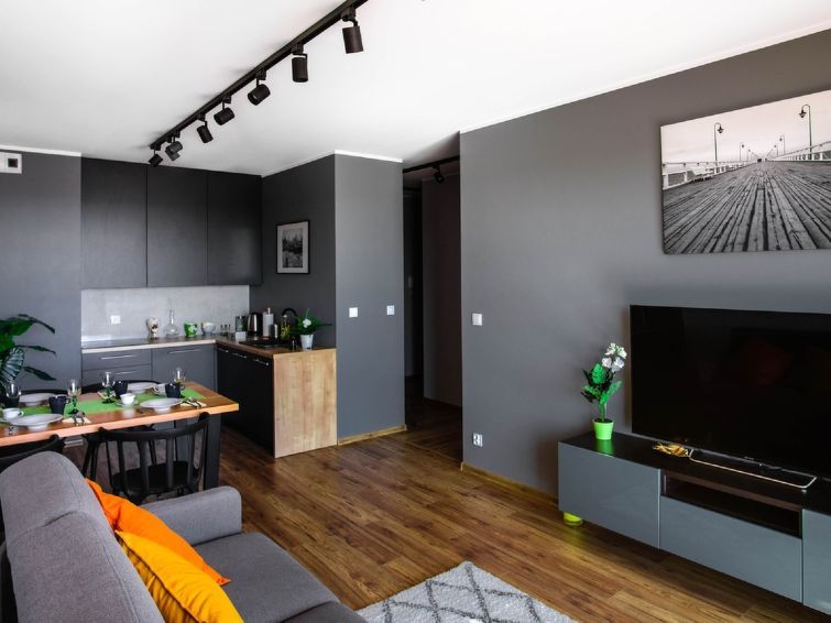 "Sunrise Home 11", 2-room apartment 44 m2 on 11st floor. Comfortable and tasteful furnishings: living/sleeping room with 1 sofabed and satellite TV. Exit to the balcony. 1 room with 1 double bed (180 cm). Open kitchen (dishwasher, 4 ceramic glass hob hotplates, microwave, electric coffee machine) with dining nook.