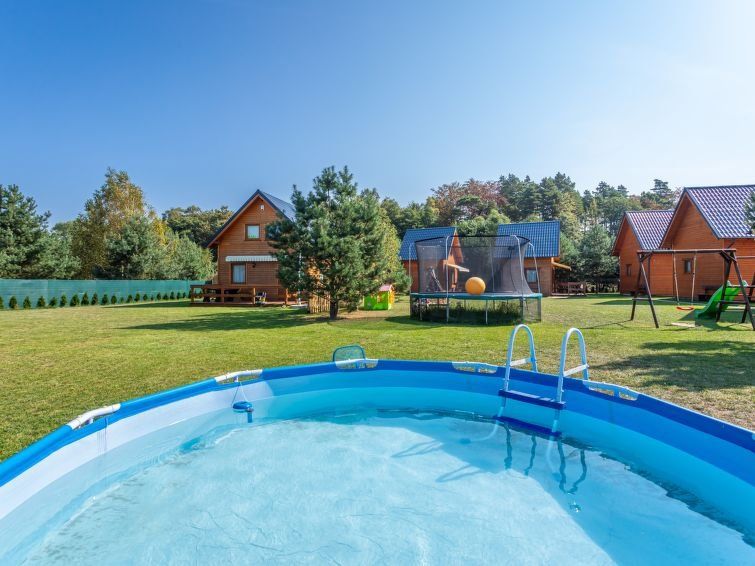 "Domek dla 4 osób", 2-room house 34 m2 on 2 levels. Comfortable and cosy furnishings: living/dining room with 1 sofabed. Exit to the garden, to the terrace, to the swimming pool. Kitchenette (1 induction hot plates, microwave) with dining table and dining nook. Shower/WC. Boiler (50 litres).