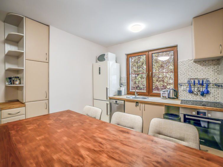 4-room terraced house 90 m2 on 2 levels. Lounge with 1 double sofabed (120 cm, length 200 cm), satellite TV. 1 room with 1 double bed (160 cm, length 200 cm), satellite TV. Open kitchen (4 hot plates, oven, dishwasher, microwave, freezer). Shower/WC, sep. WC. Gas heating. Upper floor: 1 room with 1 french bed (2 x 80 cm, length 200 cm), satellite TV.