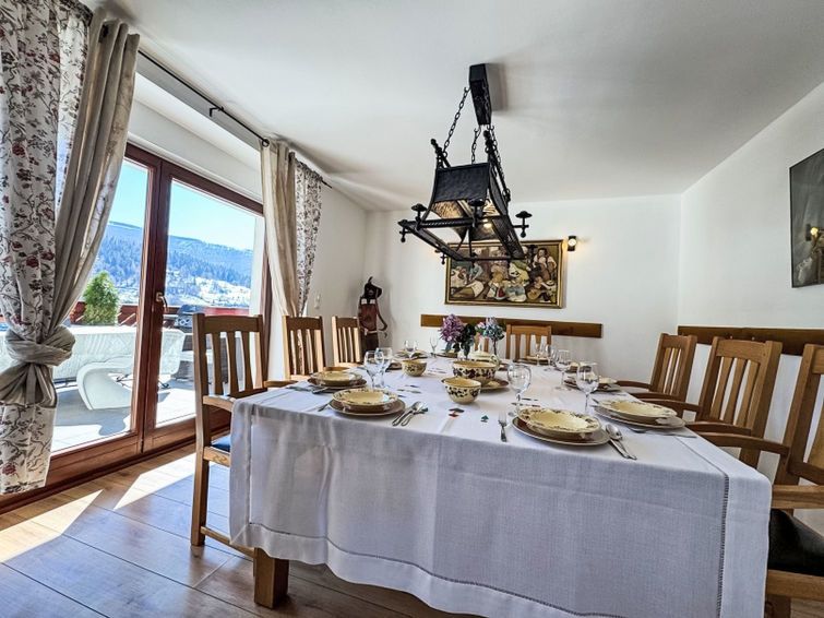 9-room villa 300 m2 on 3 levels. Spacious, luxurious furnishings: open large living/dining room with 2 sofabeds, open-hearth fireplace and satellite TV. Exit to the terrace. Large, open kitchen (oven, dishwasher, 4 ceramic glass hob hotplates, microwave) with dining table. Shower/WC.