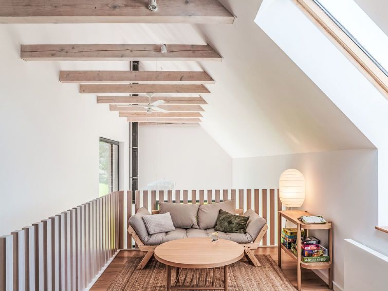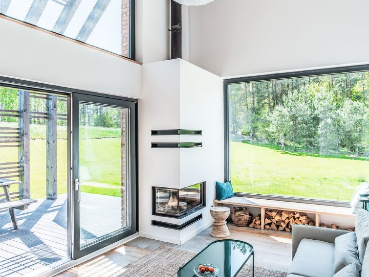 5-room house 112 m2 on 2 levels. Modern and tasteful furnishings: living/dining room with 1 sofabed and open-hearth fireplace. Exit to the garden, to the terrace. 1 room with 2 beds. Kitchen (oven, dishwasher, 4 ceramic glass hob hotplates) with dining table. Upper floor: (open staircase) open gallery with 1 sleeping facility.