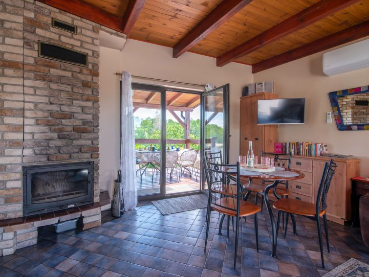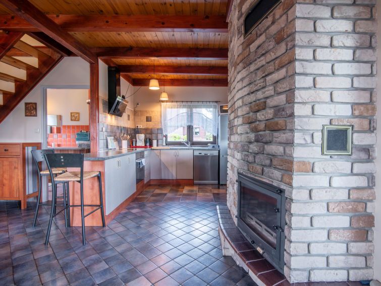 "Dom niebieski", 4-room house 96 m2 on 2 levels. Partly with sloping ceilings, simple and beautiful furnishings: open large living room with 1 sofabed, open-hearth fireplace, satellite TV and radio. Exit to the veranda. Large, open kitchen (4 hot plates, dishwasher, microwave). Shower/WC.
