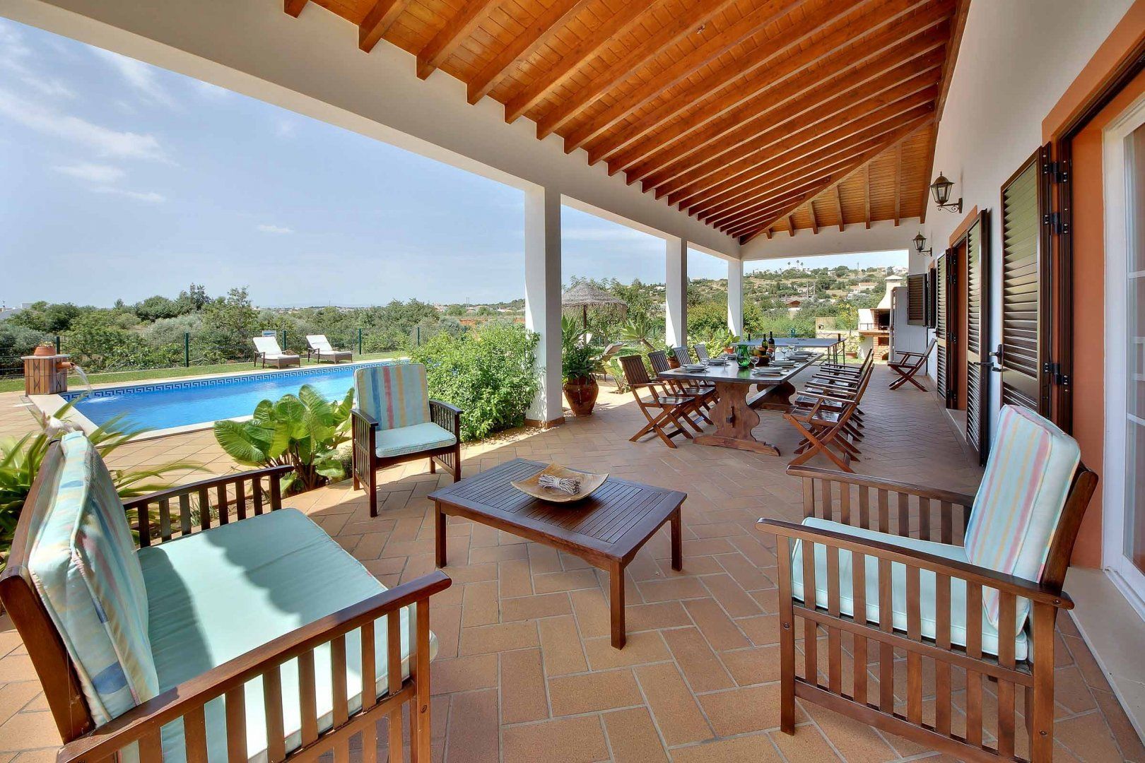 Nestled within a Mediterranean garden, this farmhouse in Albufeira is a great base for families. While the decor is a little dated and not to everyone’s taste, this single-level villa has authentic charm and is accessible to those with limited mobility. The large terrace and swimming pool lined with traditional thatched sun umbrellas certainly offer holiday vibes. And where better to enjoy an alfresco family meal cooked on the barbecue than under the shaded dining area? For those looking to explore the coastline, Castello and Evaristo beaches in Gale are both within walking distance – as are restaurants and shops.