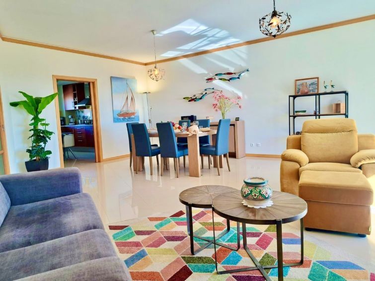 "Aguia M T2", 3-room apartment 135 m2, on the upper floor. Spacious and bright, very practical and cosy furnishings: living/dining room with 1 sofabed (140 cm, length 190 cm), dining table, cable TV, flat screen, air conditioning and forced-air heating. Exit to the terrace. 1 room with 2 beds (90 cm, length 200 cm), air conditioning and forced-air heating.