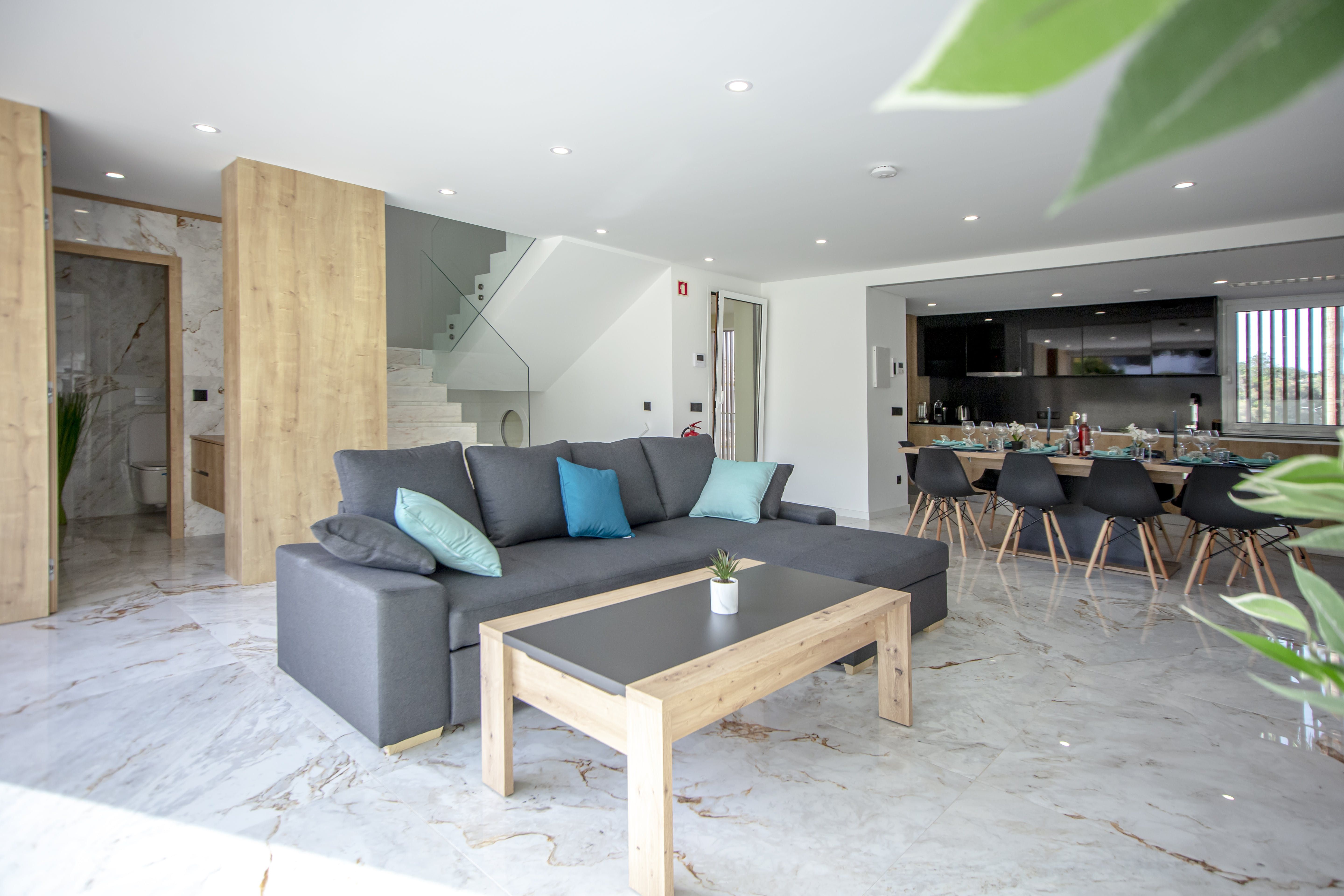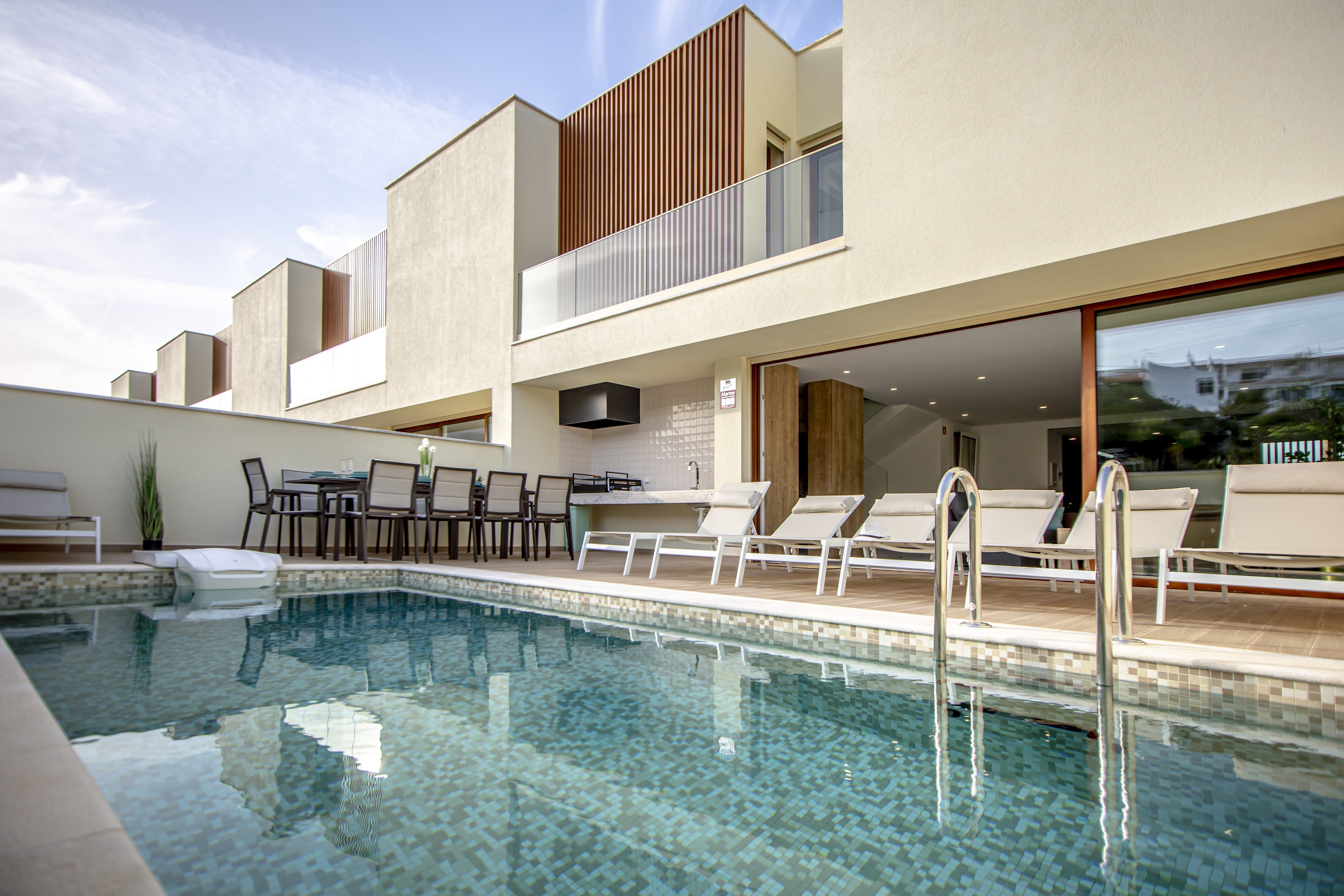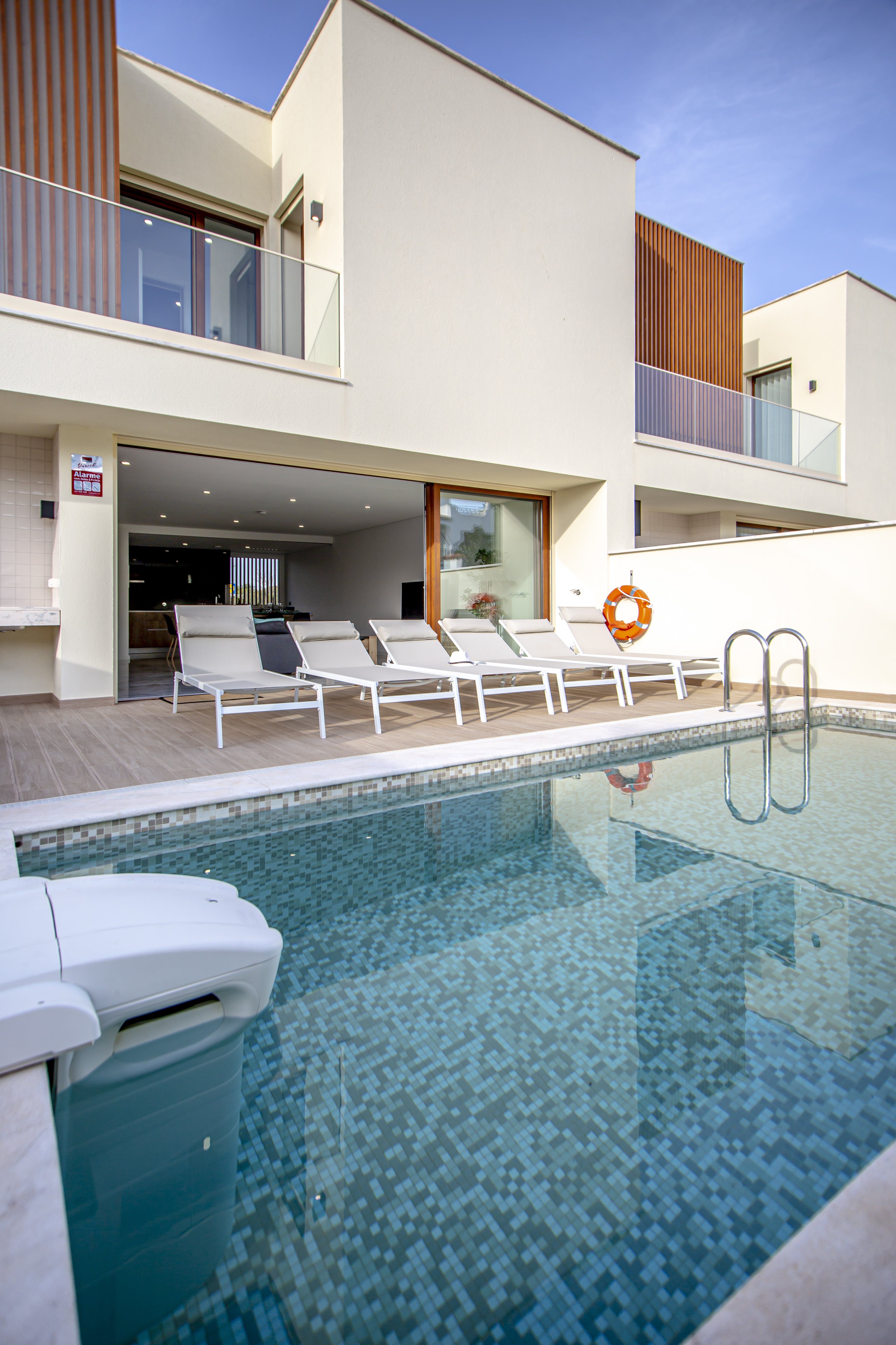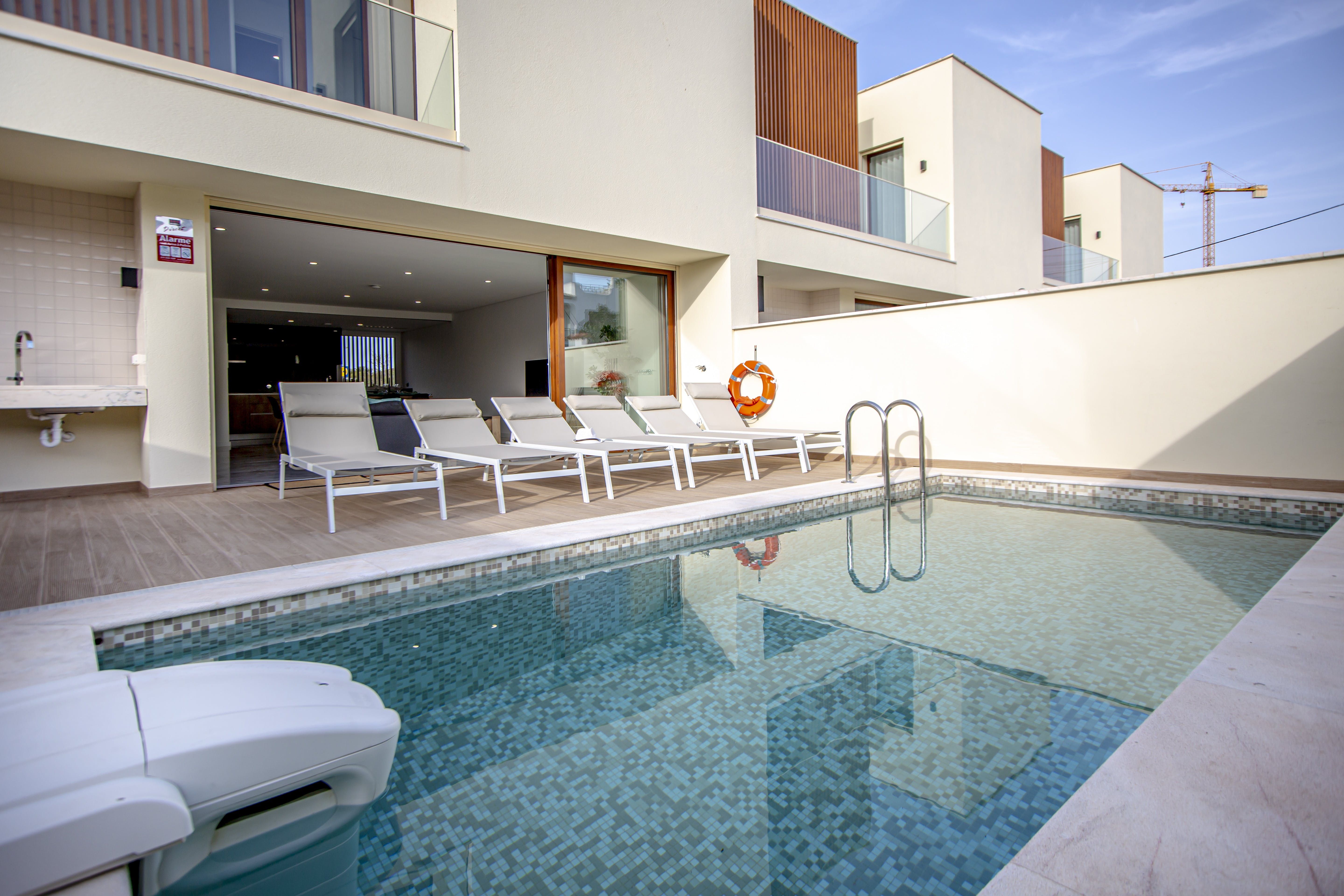 Hidden in the Albufeira city centre lies this gorgeous villa, filled with enough luxuries to make your stay a memorable one. Make a splash in the glittering waters of the private pool or lounge poolside as you work on that perfectly golden holiday tan under the sun. If you're still in business mode, get set up at the workspace downstairs for some remote work before you let loose and relax out on the terrace. Powered by solar panels and with a system designed to save water, this villa is as eco-conscious as it is beautiful. Settling in won't take long and you'll be dining alfresco or relaxing in the Jacuzzi jets of a hot bath in no time.
