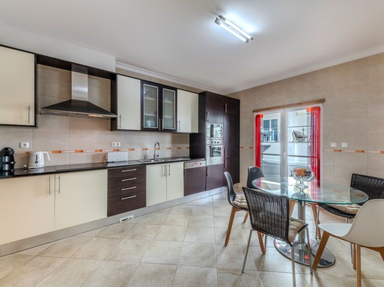"Encosta dos Salgados", 4-room terraced house 154 m2. Very comfortable and cosy furnishings: kitchen (oven, dishwasher, 4 ceramic glass hob hotplates, toaster, kettle, microwave, freezer, electric coffee machine, Capsules for coffee machine (Dolce Gusto Not Incl)). Sep. WC. On the lower ground floor: living/dining room with cable TV, international TV channels, flat screen, air conditioning and forced-air heating.