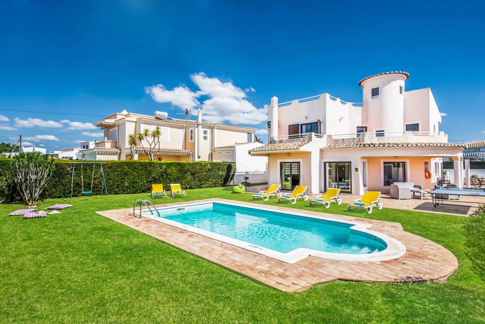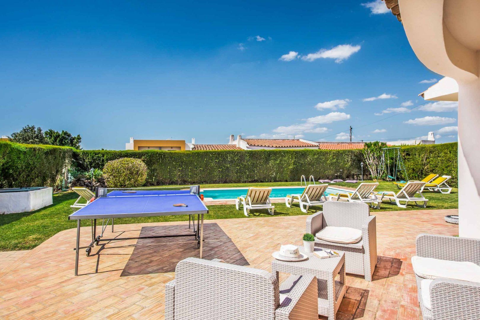 Near the popular resort town of Albufeira and its sandy coastline, this traditional villa is perfect for a laid-back stay spent relaxing with friends and family. The natural stone facade, turrets and grand pillars make a bold first impression, but it's the outside space that's the real standout here. From your private pool and manicured garden to the brick-built barbecue for dining out on the shaded terrace, it's certainly not lacking in outside living areas. Plus, you've got a ping-pong table for the kids and a sunny rooftop balcony with far-reaching views. Location-wise, a short drive will take you to Praia do Castelo, while the charming village of Gale is nearby for evenings out.