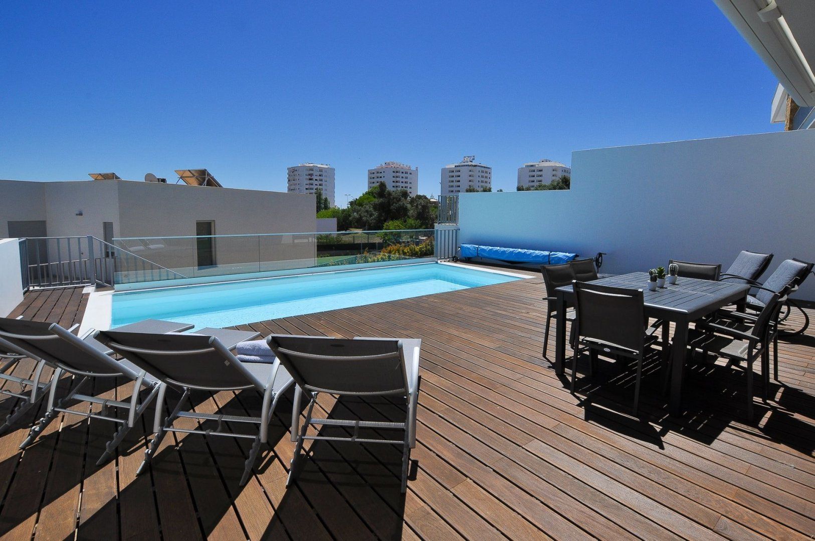 This awesome Algarve home is a modernist masterpiece. Characterised by its contemporary design and featuring a light-filled open plan kitchen, dining and living room complete with double height ceilings and near floor to ceiling sliding glass doors which open out onto the poolside deck and barbecue area, this perfect Portuguese home is stylish, sleek and sophisticated.