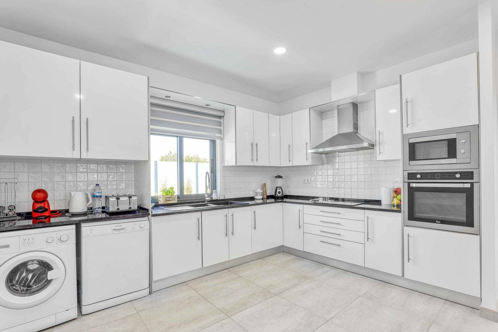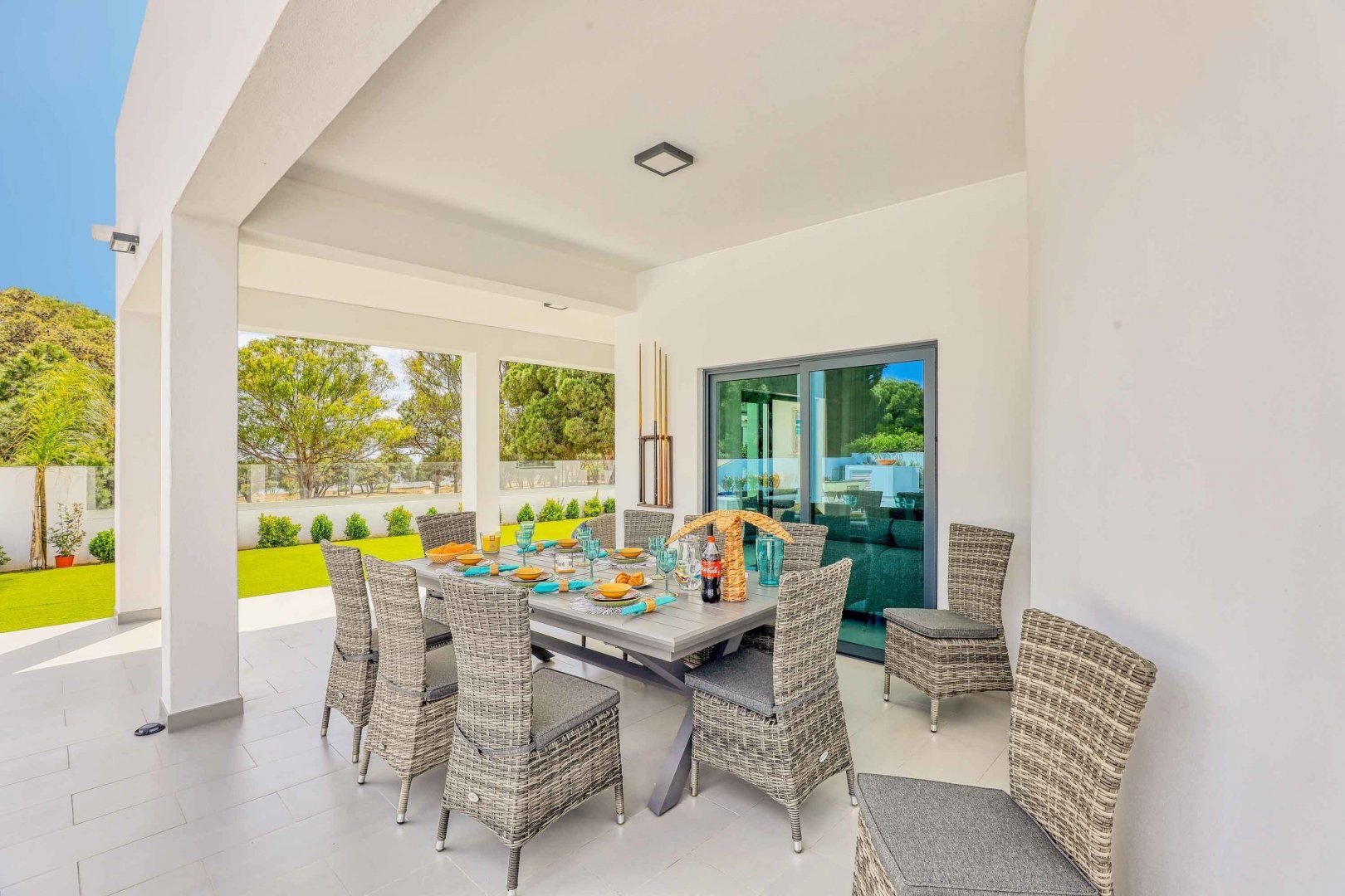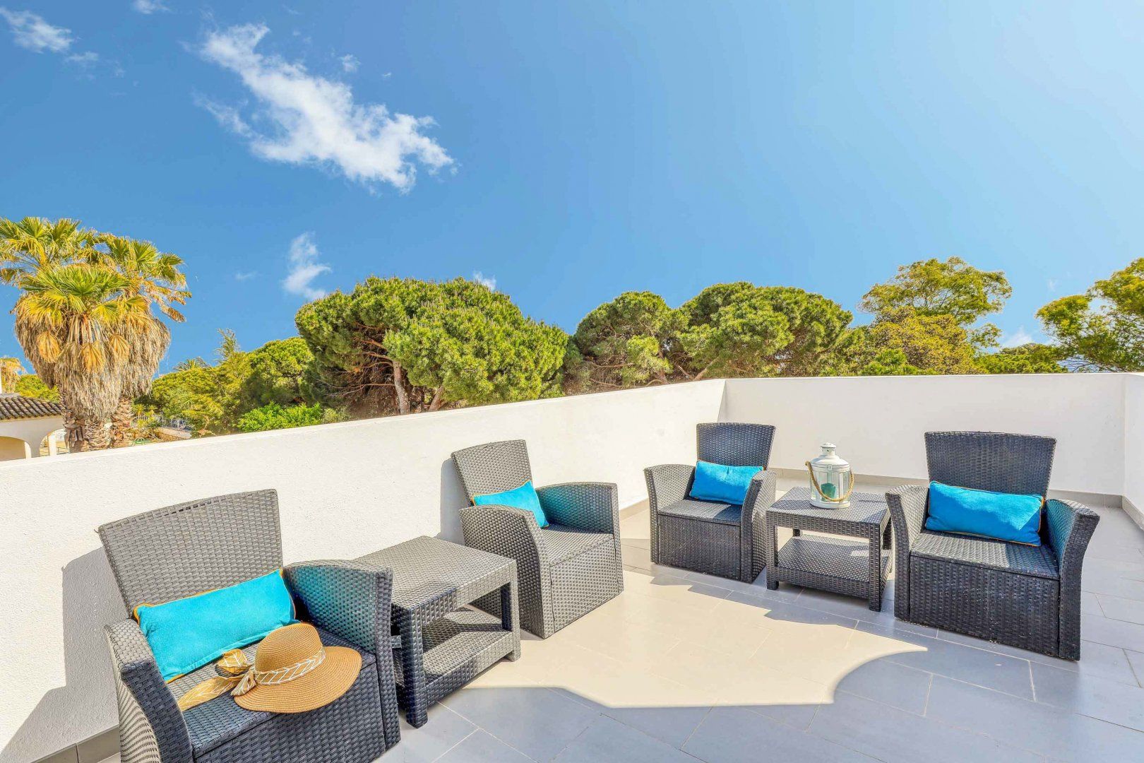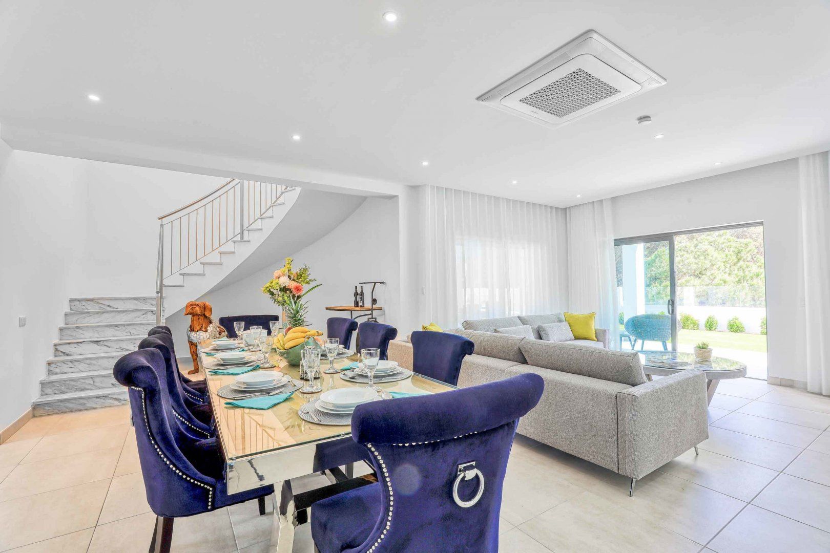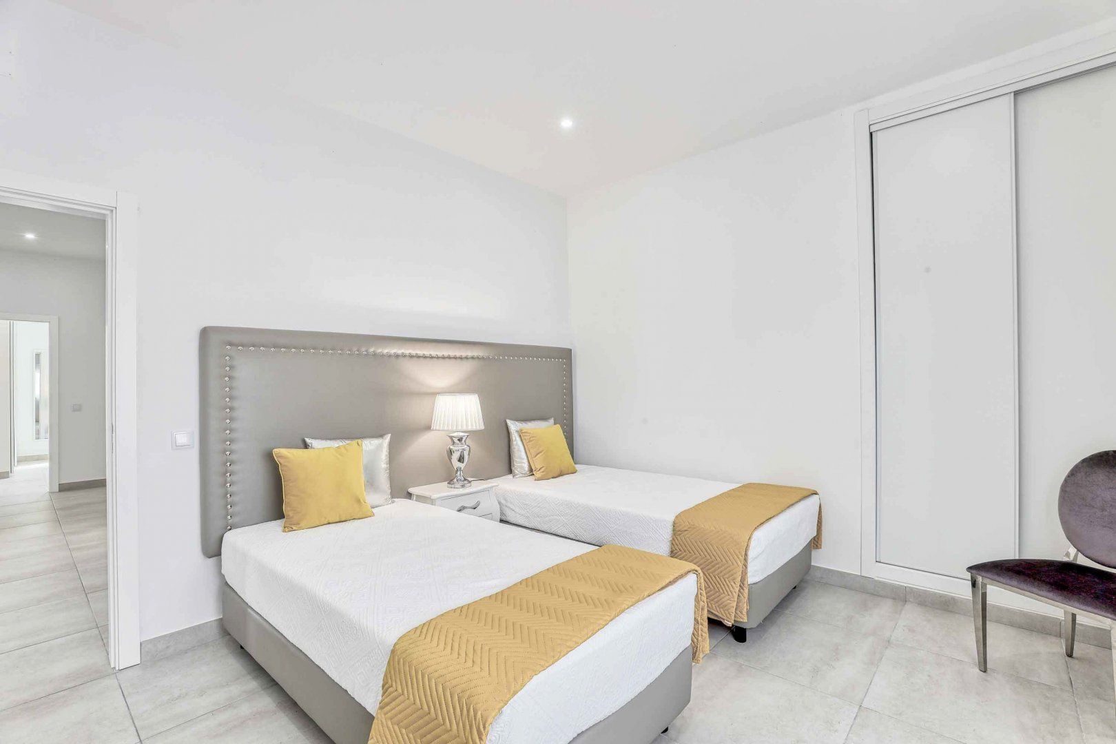 Located right at the heart of Albufeira, this villa is pretty impressive. The popular beaches of Castelo and Evaristo are within walking distance – as are plenty of shops and eateries – but this home has more going for it than just location. There’s heaps of room for a group, including a second lounge upstairs that would be ideal for kids to claim as their own – they’ll also have table tennis and a pool table to keep them entertained. Outside, the choice of covered terraces, quiet balconies, and poolside daybeds will appeal to those wanting a laid-back stay.