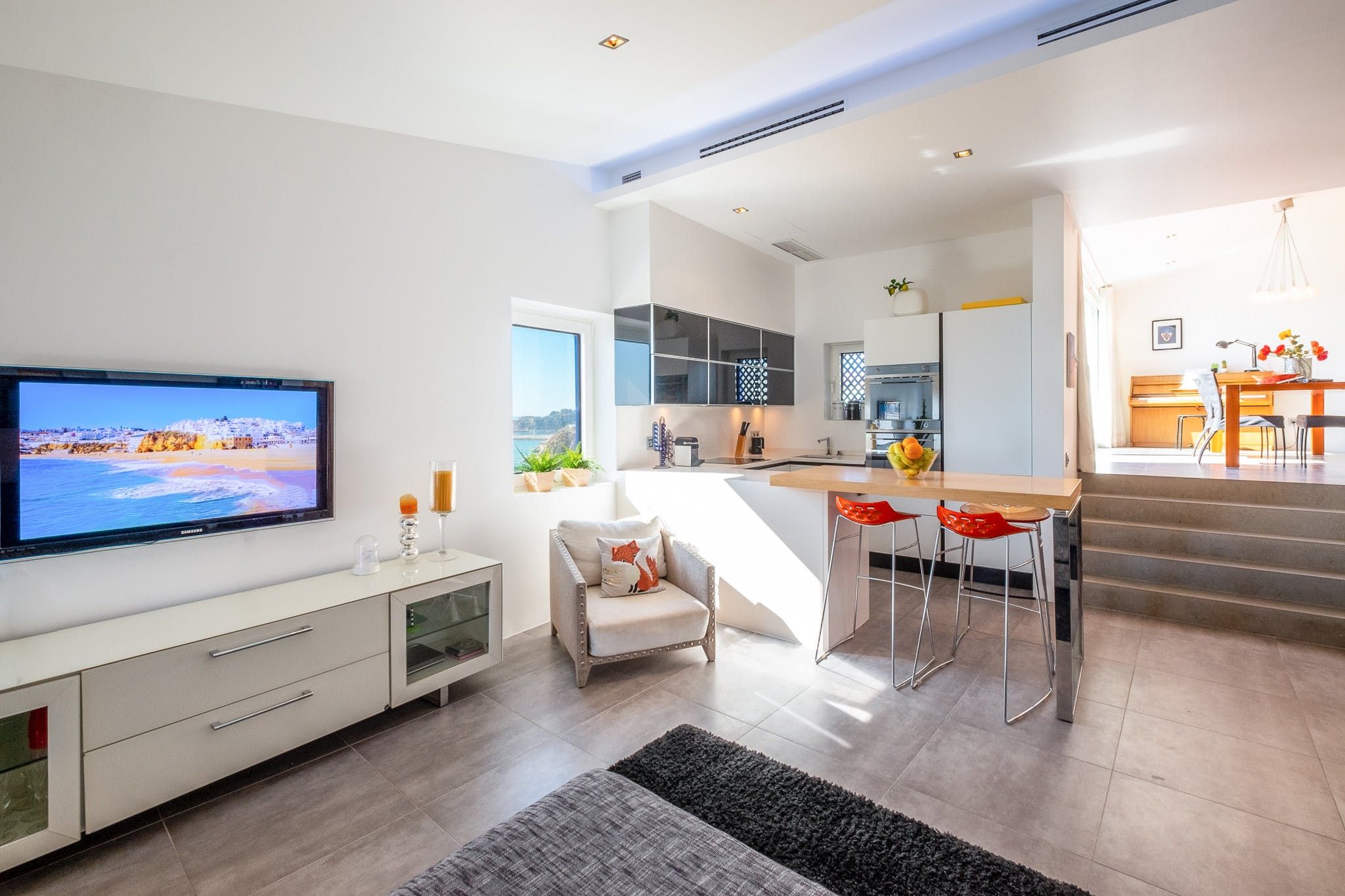 Perfect for a family getaway by the coast, this bright and breezy villa in Albufeira boasts sparkling sea views – best enjoyed from the private balcony over a bottle of wine, although the vistas are visible from many rooms inside, too. Some of the bedrooms are a bit of a squeeze, and the balcony is the only outdoor space, but with Túnel beach just fifty metres away and a great selection of beachfront eateries to enjoy, you’re likely to spend most of your time lapping up the Portuguese sun away from home.