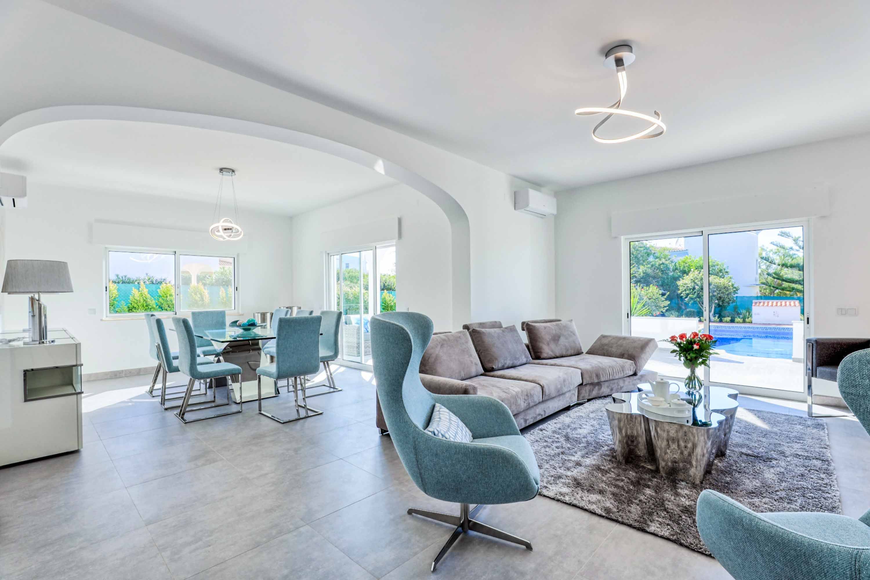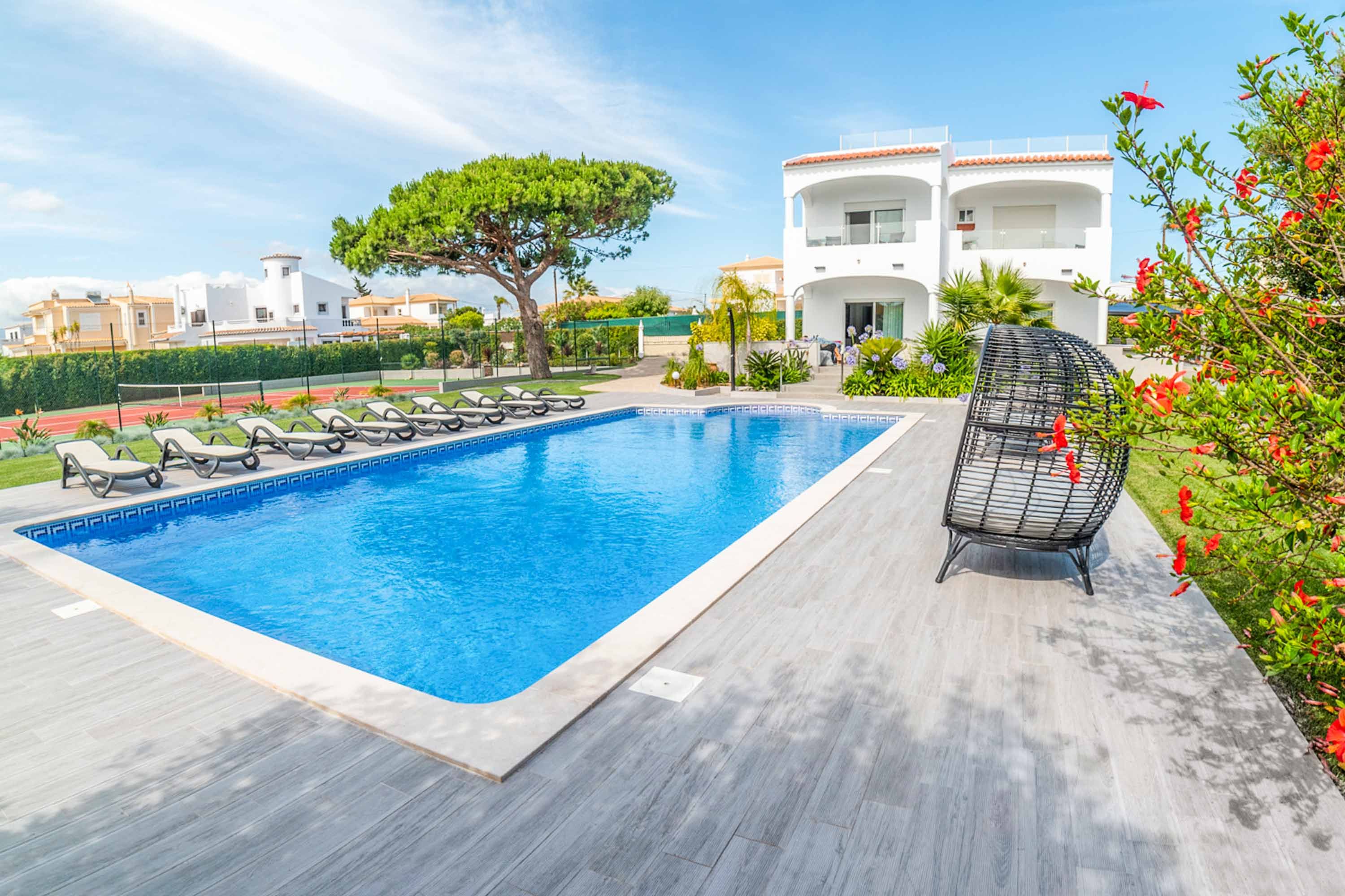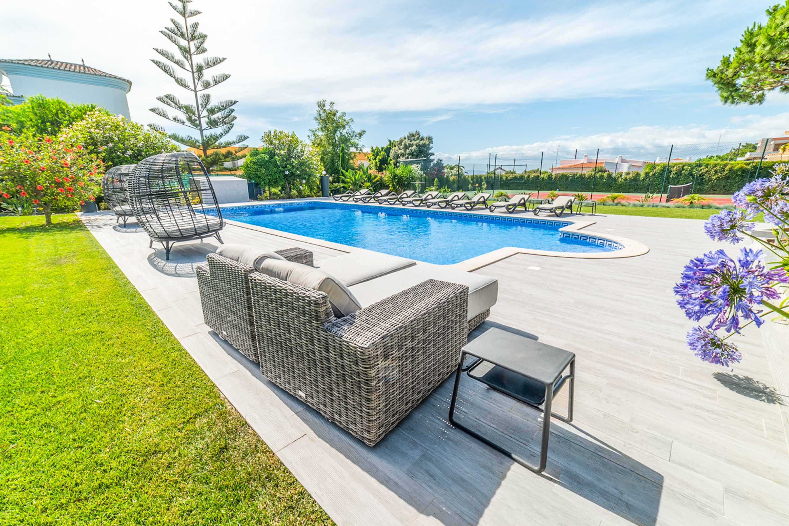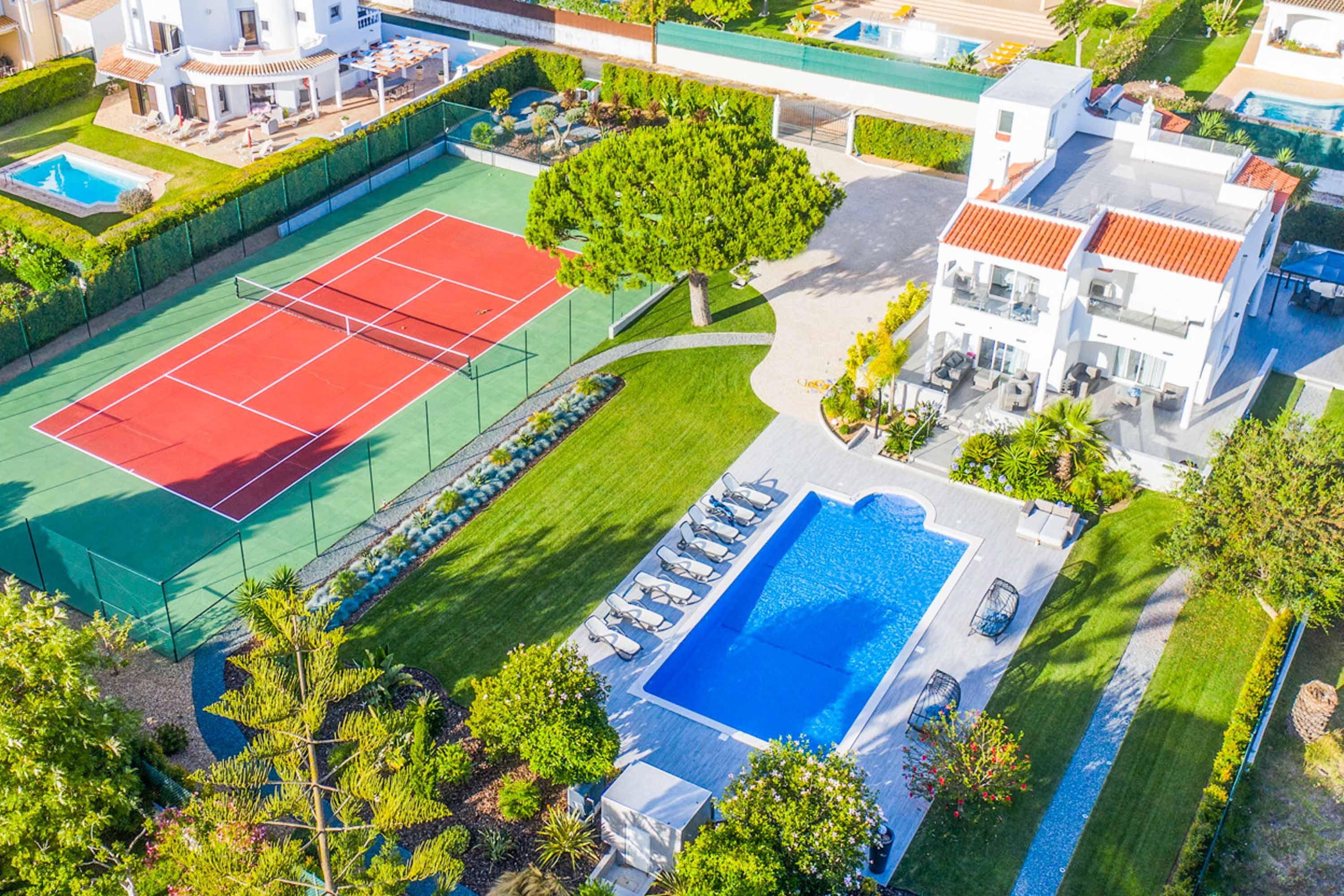 Casa das Tilias is a stunning villa located in a quiet residential area on the outskirts of the popular resort of Gale. It has been completely renovated in 2019 to an impressive standard, with elegant design and luxurious furnishings throughout. The property features a fabulous 11m by 4m private pool, extensive poolside terrace, and private full-size enclosed tennis court. Upstairs, the villa's accommodation has an airy atmosphere with each bedroom individually styled and boasting bold, oversized headboards and opulent bed linen. All rooms have their own balcony overlooking the pool and gardens. On the ground floor is an open-plan lounge and dining room exuding style and sophistication. The owner has also provided Bluetooth speakers in the ceiling lights, a fully fitted kitchen with high gloss cabinetry, a plush sofa for relaxation, and a striking glass dining table to linger over meals. Outside, there is an alfresco cooking area with stone BBQ and shaded gazebo tucked away beneath the olive trees in the gardens. Guests are free to pick from the palms, hibiscus, nut, and fruit trees in season. There are numerous shops, bars and restaurants within walking distance, while Gale beach with its soft golden sand is only minutes away by car.