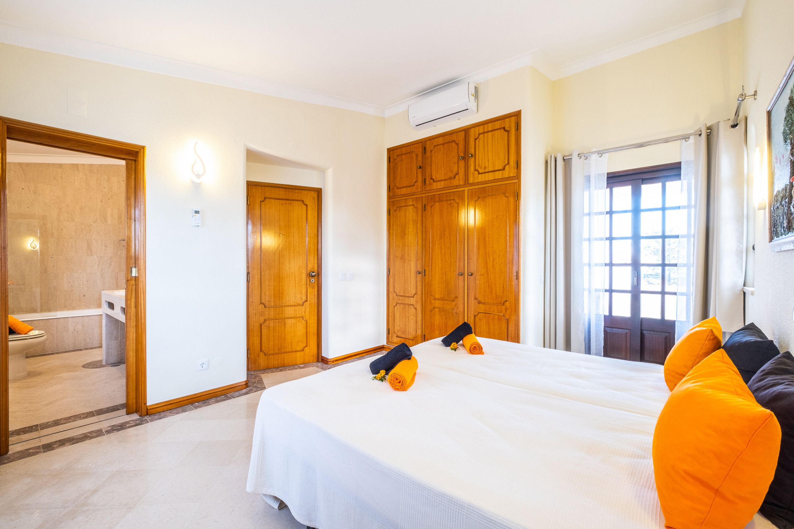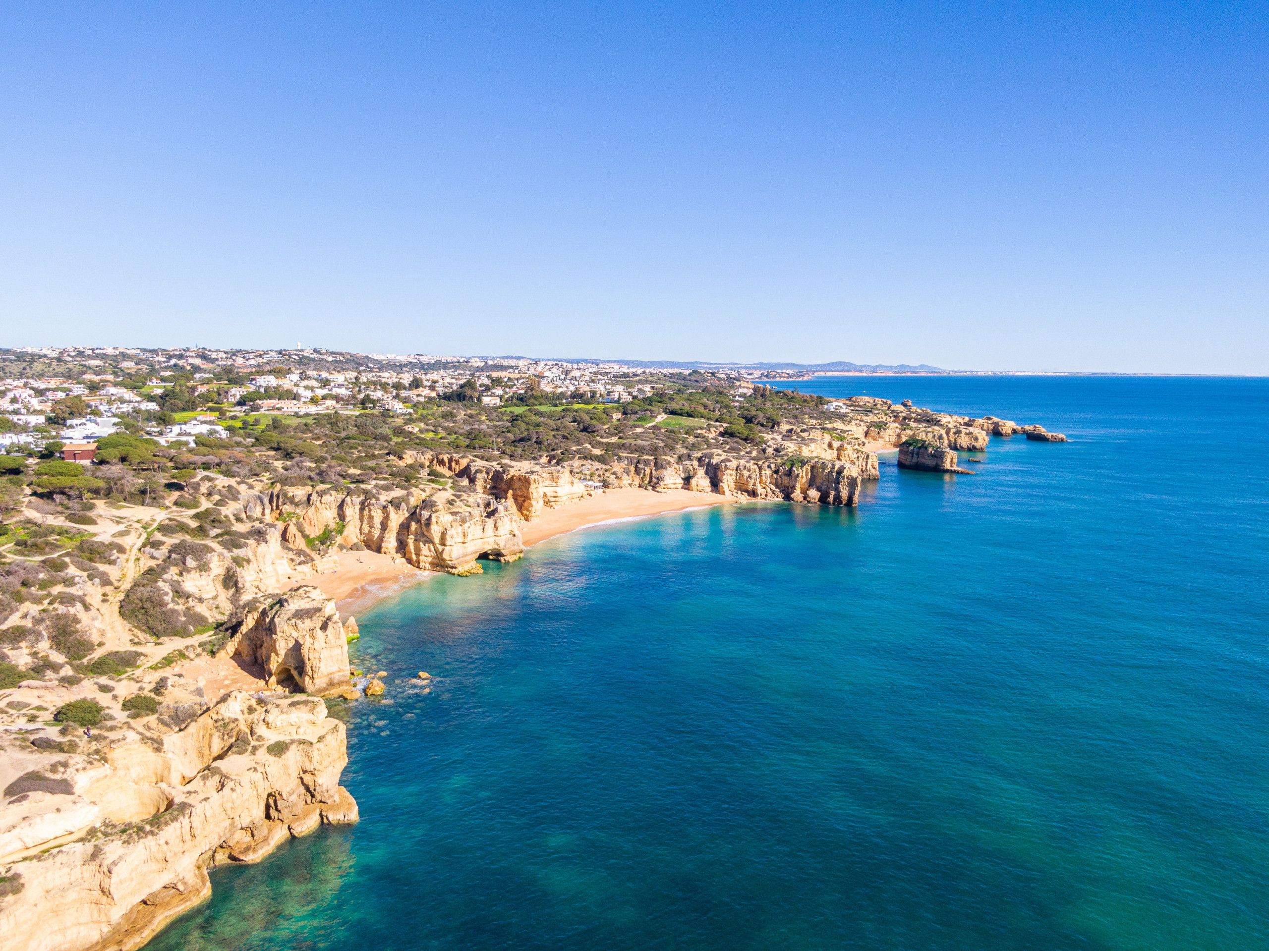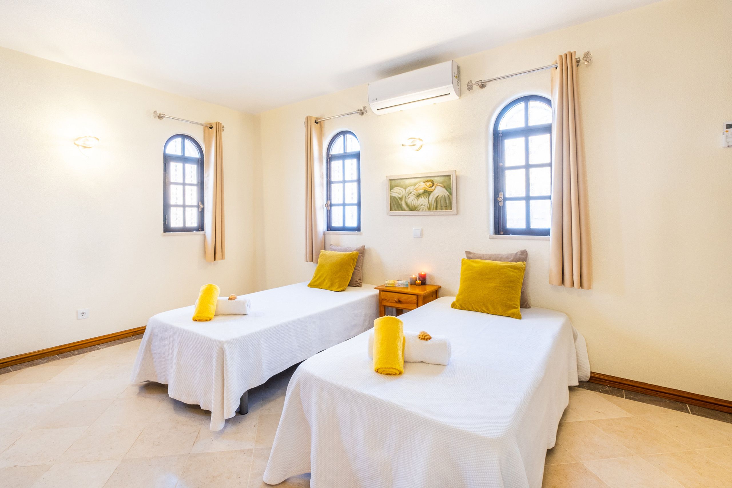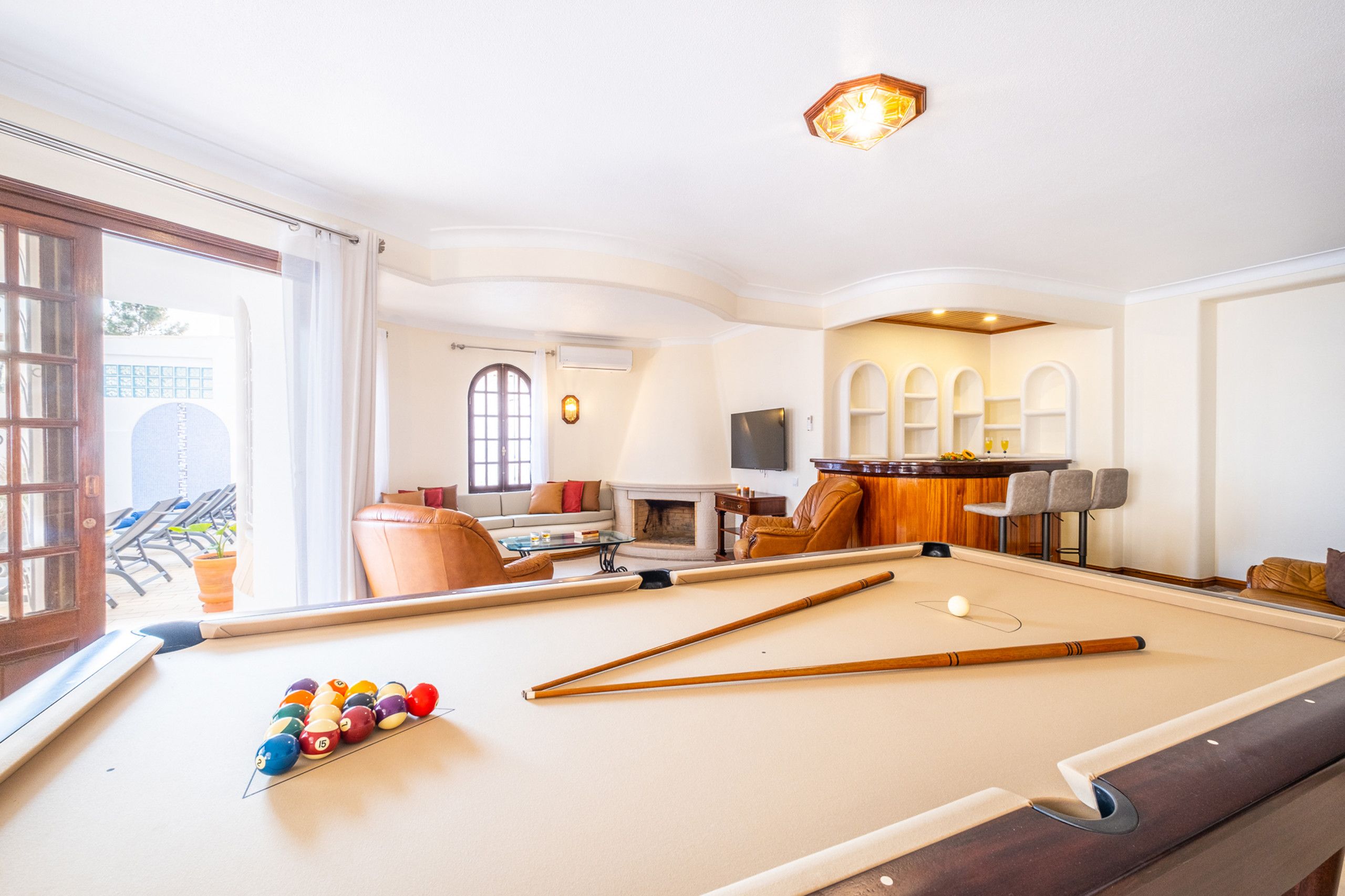 In Albufeira's gorgeous São Rafael, this stunning villa is well-equipped for a fabulous stay. The large private pool, heated for an additional cost, is surrounded by sun loungers and a barbecue area for alfresco dining. All the bedrooms and living areas benefit from air conditioning, and while the style is a little plain in some rooms, in the basement you'll find a fun-filled entertainment area complete with a billiards table and bar. Beaches, shops, restaurants, and bars all are within a twenty-minute walk. That said, you may want a car for ease – especially if you plan to explore further afield.