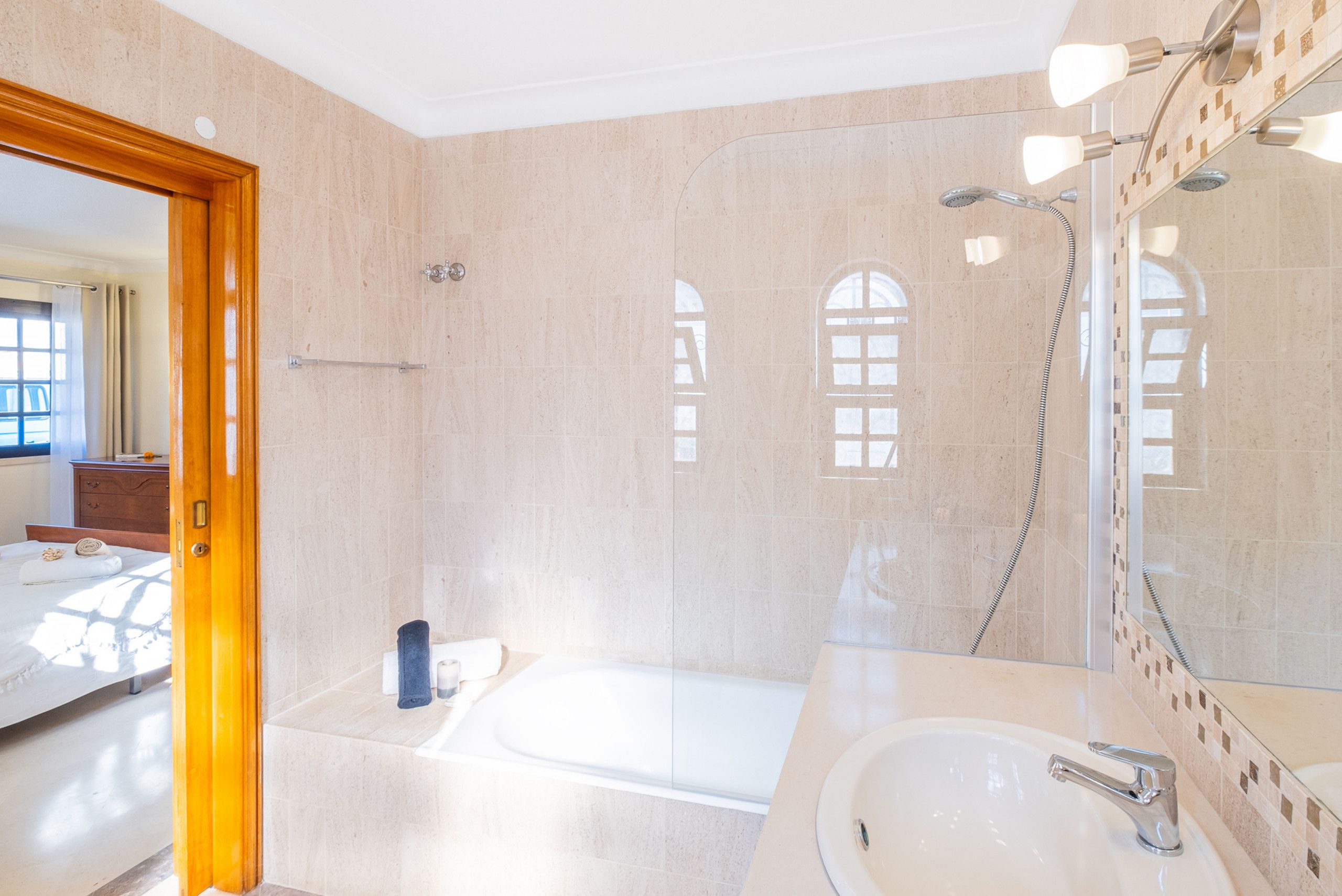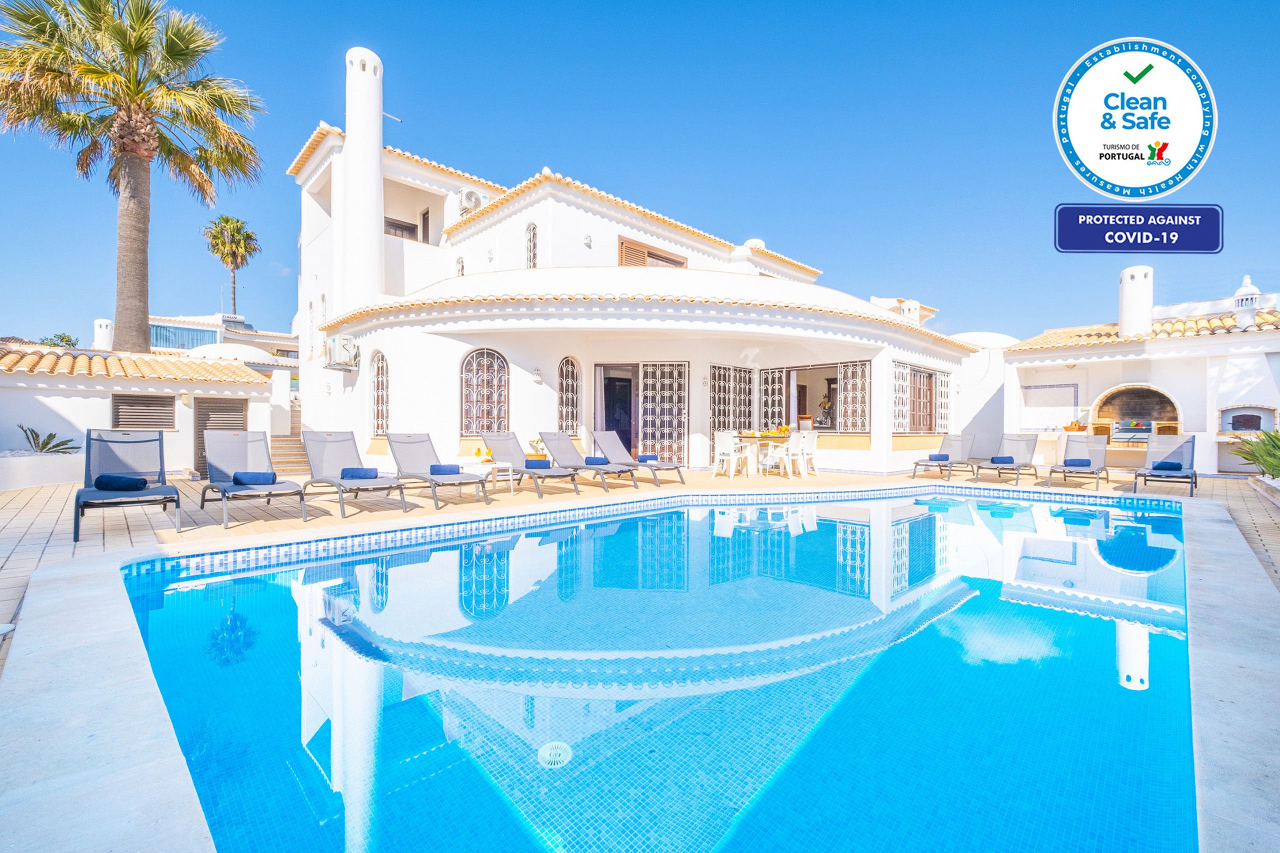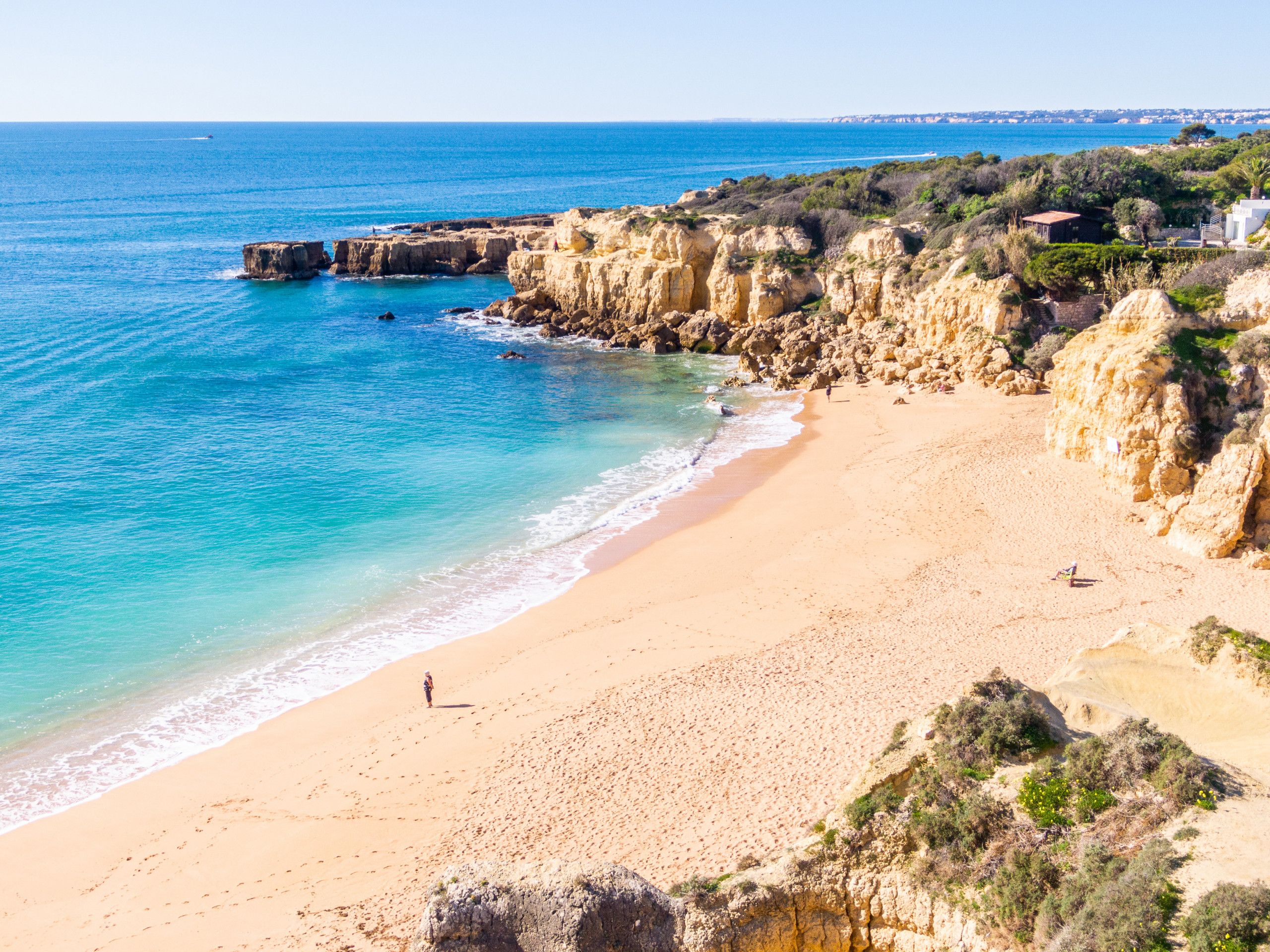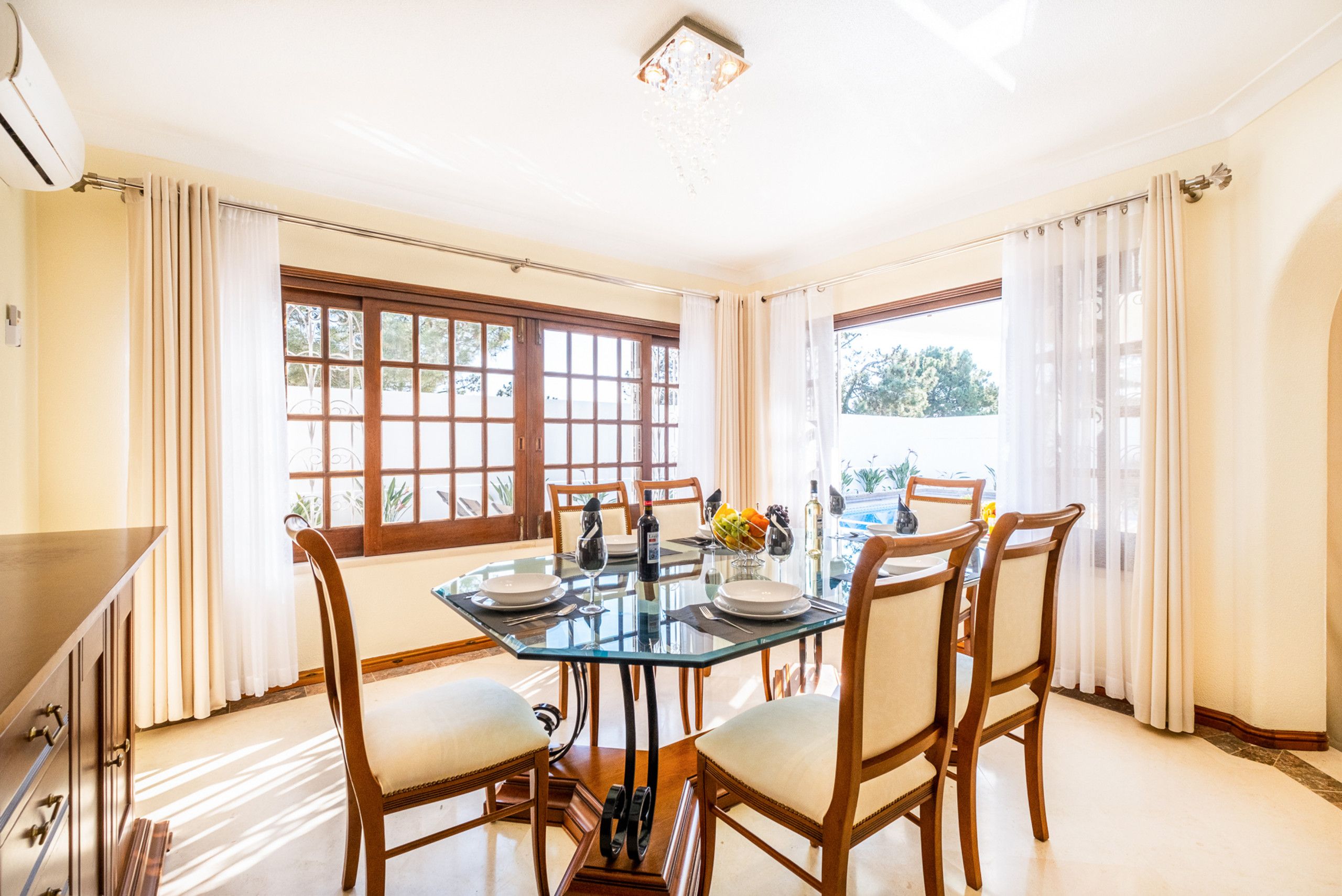 In Albufeira's gorgeous São Rafael, this stunning villa is well-equipped for a fabulous stay. The large private pool, heated for an additional cost, is surrounded by sun loungers and a barbecue area for alfresco dining. All the bedrooms and living areas benefit from air conditioning, and while the style is a little plain in some rooms, in the basement you'll find a fun-filled entertainment area complete with a billiards table and bar. Beaches, shops, restaurants, and bars all are within a twenty-minute walk. That said, you may want a car for ease – especially if you plan to explore further afield.