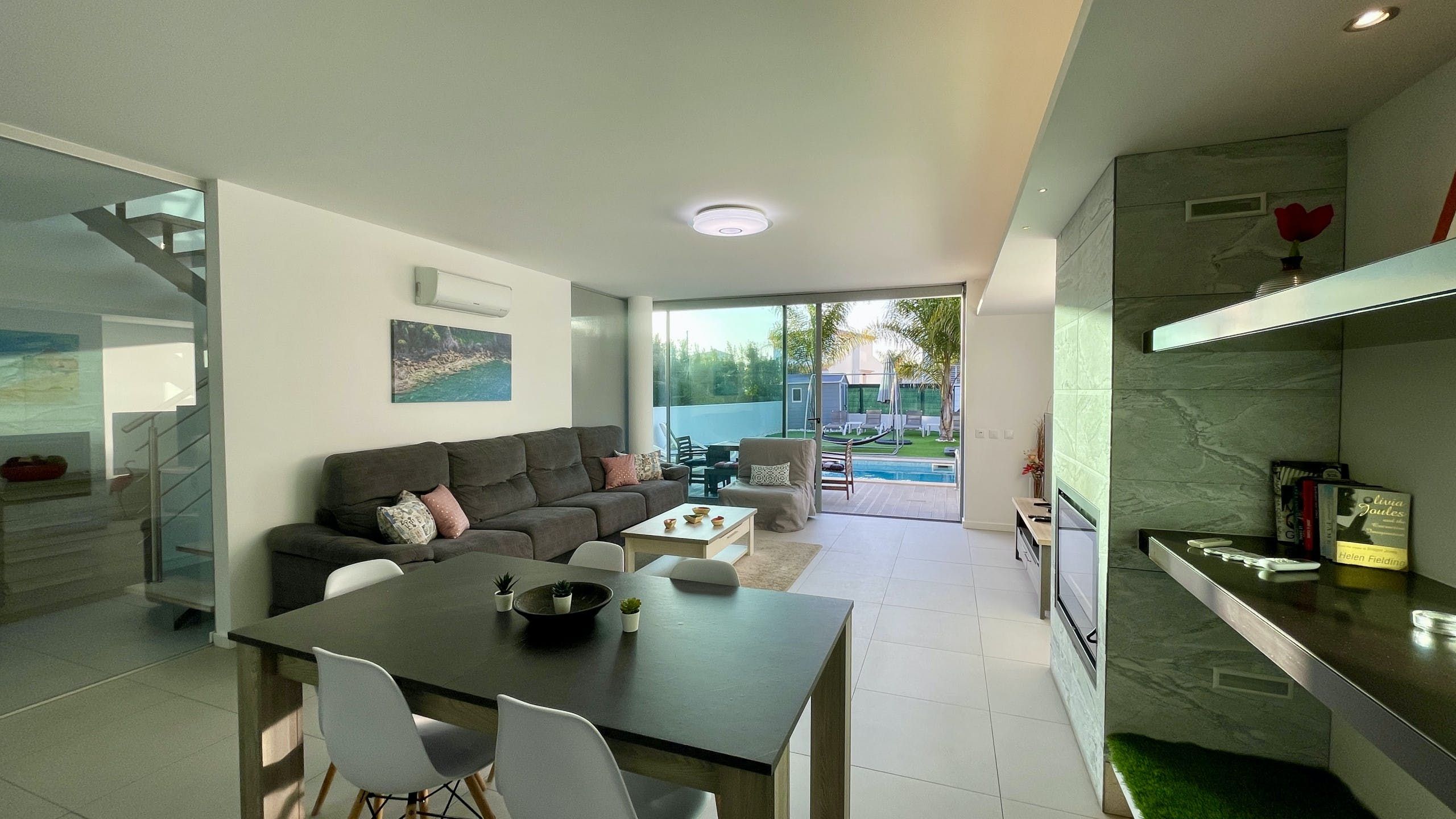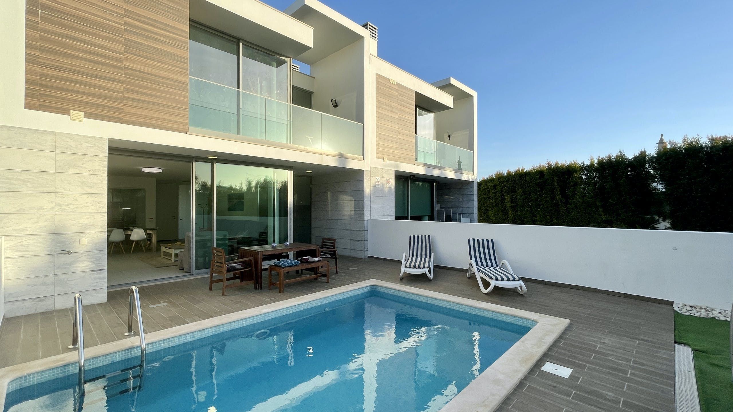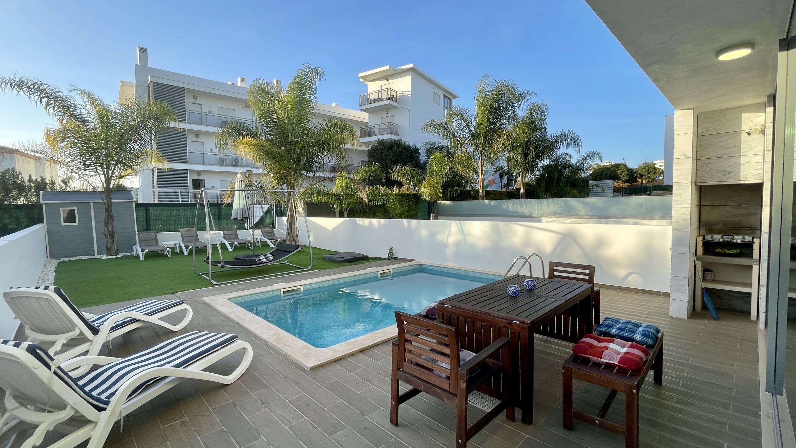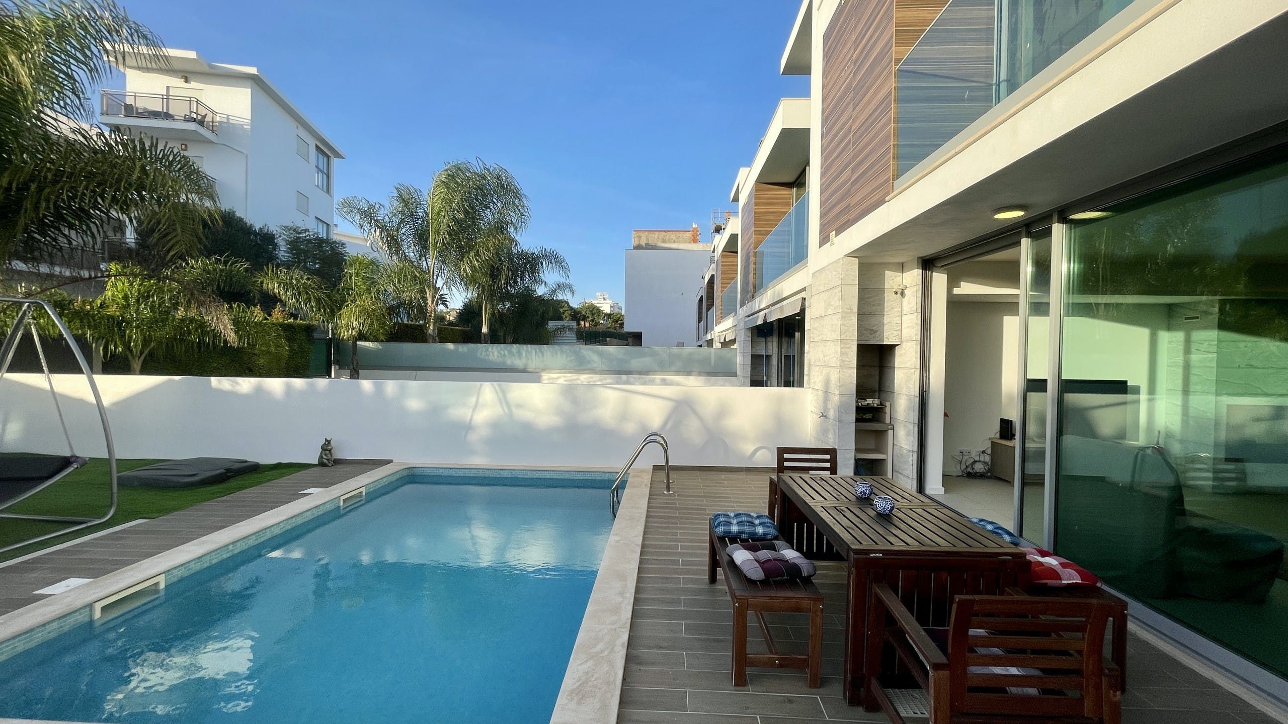 This villa is a great choice for families or groups of friends seeking a private garden and pool while being located near the beach. From here, the sandy shores of Praia Mónica Isabel are 2km away. We recommend hiring a car for ease – there's on-site parking available. You're a short walk from plenty of restaurants and supermarkets, making it ideal for those looking to relax at home. There's also a sleek kitchen as well as an outside dining area for group meals. Meanwhile, you'll find a private balcony off the main bedroom for some well-earned downtime.