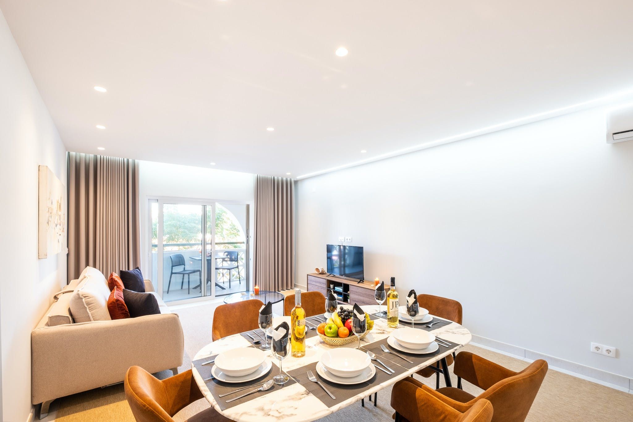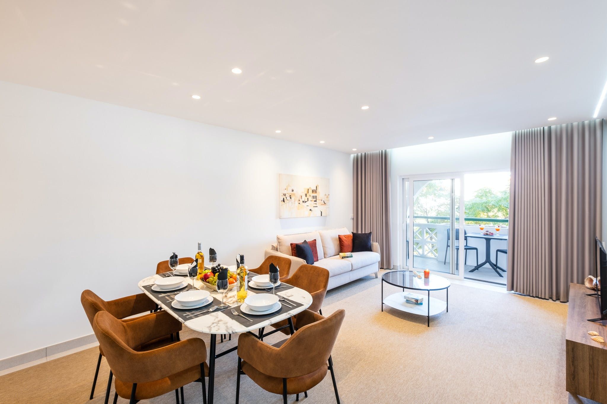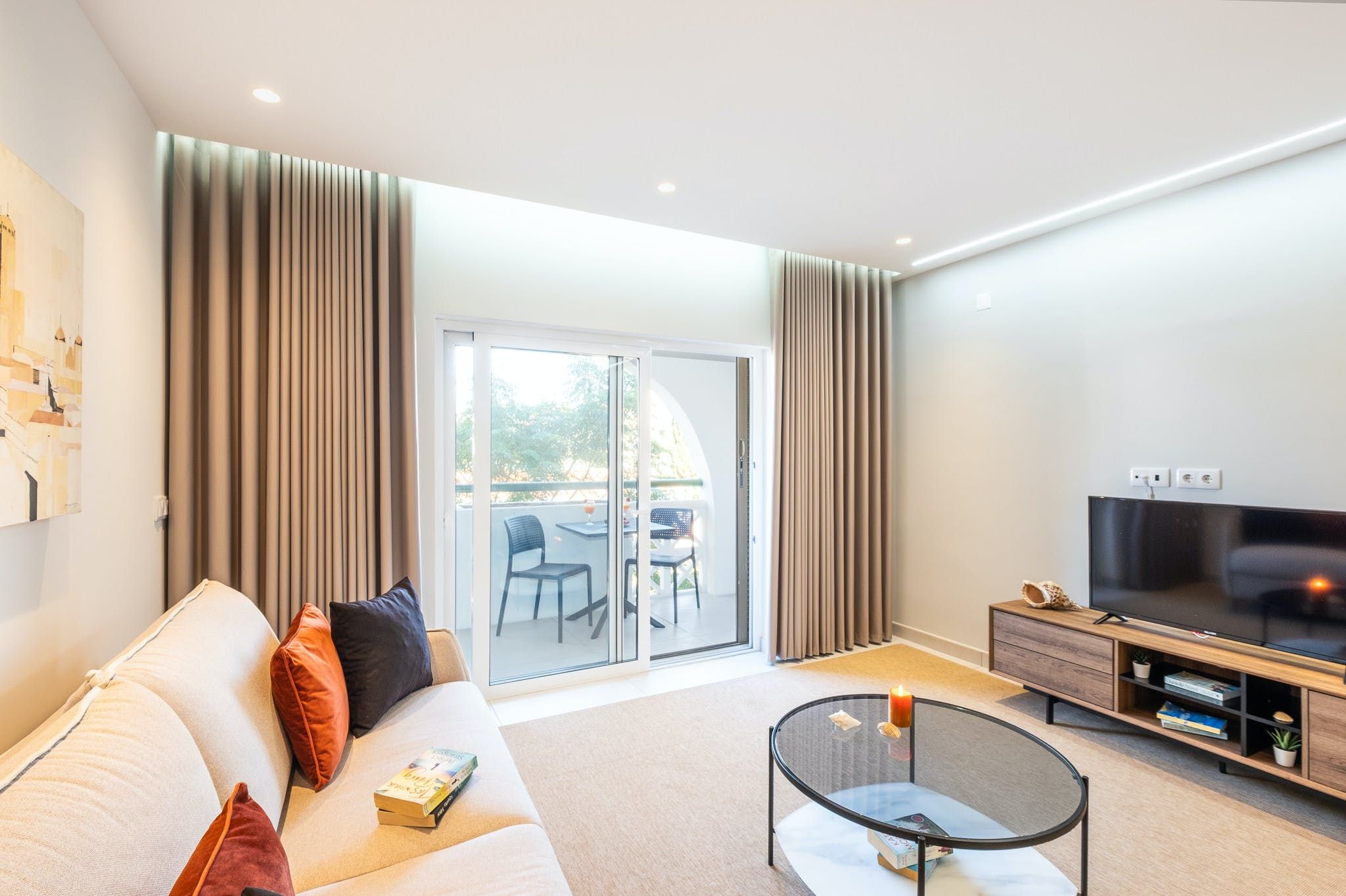 Are you looking for an easy seaside getaway right in the thick of Albufeira's action? This smart apartment, perched just 950 metres from the beach and with the bustle of the old town close by, ticks the right boxes. Part of a holiday complex, you'll share a swimming pool and wider grounds. So if you're looking for privacy and seclusion, there might be a better place for you. But with so many amenities on foot and a private balcony for evening drinks, it's a compromise we're happy to make.
